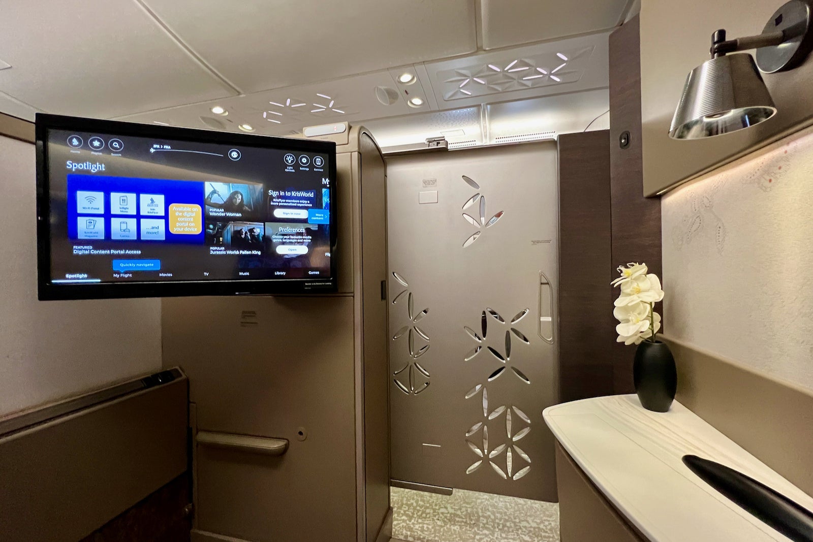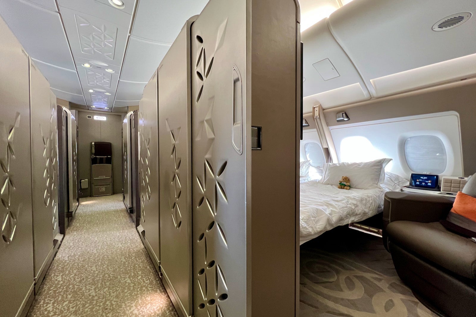 This A380 has an intimate, six-pod "Suites" first-class cabin that's regarded as one of the world's best.