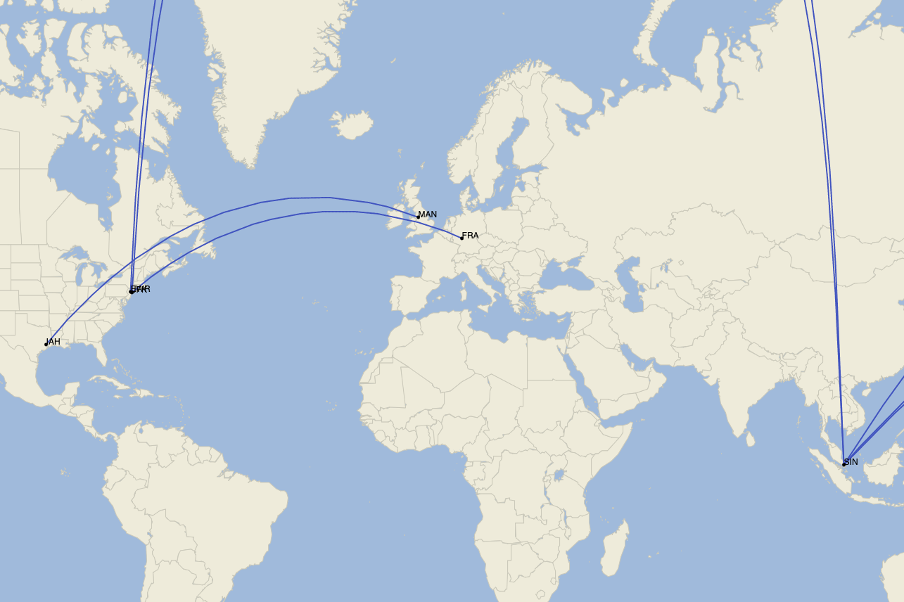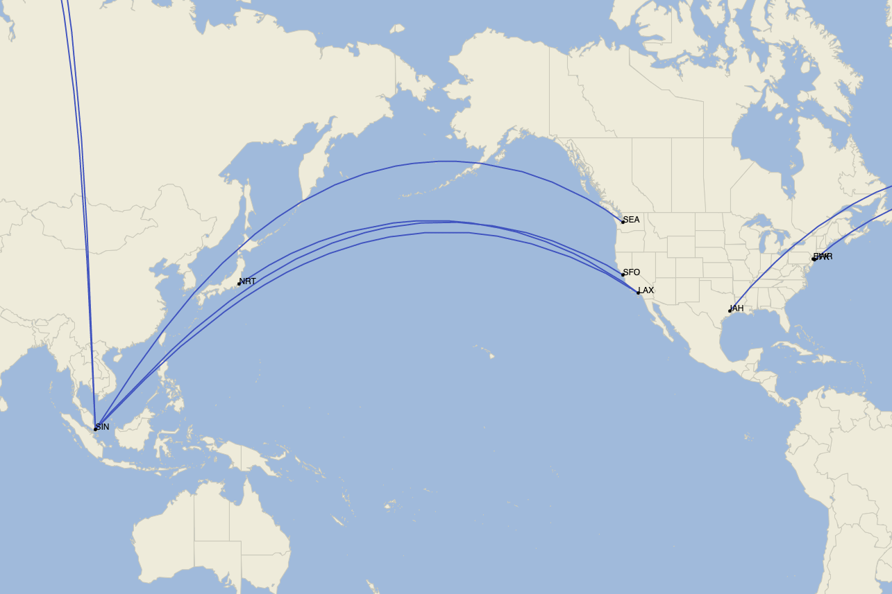 In New York, the airline now flies the world's two longest routes — connecting Singapore with nonstop flights to both New York's John F. Kennedy International Airport (JFK) and Newark Liberty International Airport (EWR). (The JFK route holds the No. 1 spot at 9,537 miles long, while the Newark route is just 3 miles shorter.)