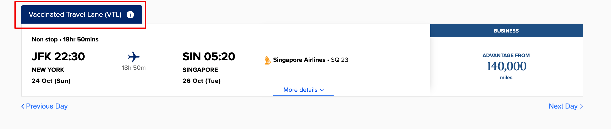 Travelers bound for Singapore must still fly on designated vaccinated travel lane flights. These include services on Singapore Airlines between Singapore and the following cities: Amsterdam (AMS), Barcelona (BCN), Copenhagen (CPH), London (LHR), Los Angeles (LAX), Milan (MXP), New York (JFK), Paris (CDG), Seoul (ICN) and Rome (FCO).