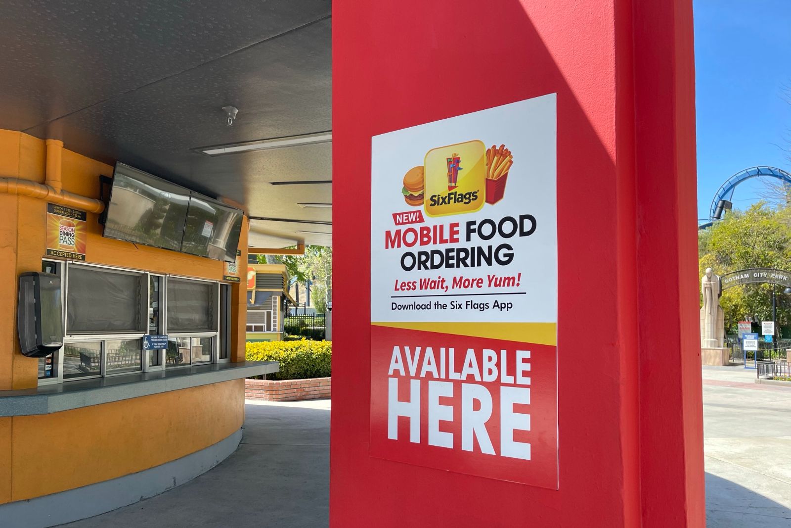 There were several posters and signs encouraging people to pre-order their food on the Six Flags app and reserve an arrival time to pick it up. Unfortunately, not all restaurants were on this system. I found it easier to look for the places with the shortest lines rather than use the app.