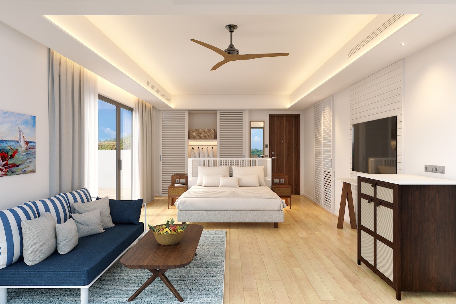 In the pool suites, guests will find king-size beds and views of the ocean, the bay or the lagoon, plus a private pool on the terrace in addition to stocked minibars, a pillow menu, a Naturalmat organic mattress and a yoga mat. In Panorama Ocean View Pool Suites, things go a little further with suites up on the cliff offering incredible views and an outdoor terrace with a pool and outdoor living space.