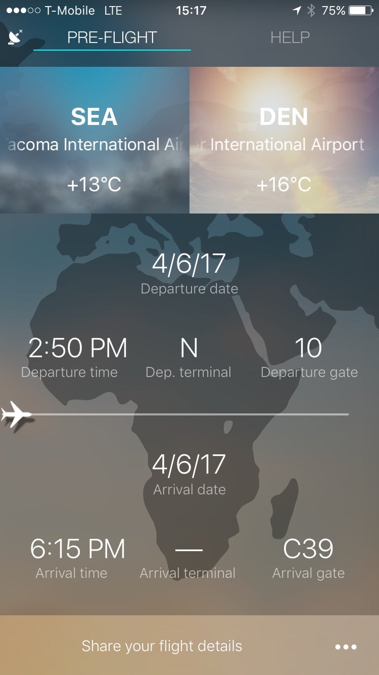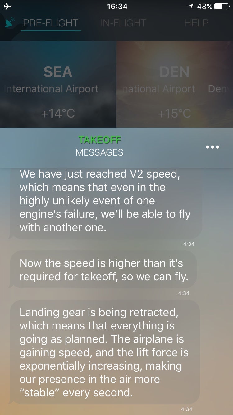 Enter SkyGuru. The app — which is still in beta testing — explains each stage of flight to passengers, and also integrates weather reports so that passengers can know to expect turbulence at certain points along their journey. I used SkyGuru on a recent Alaska Airlines flight between Seattle International Airport (SEA) and Denver International Airport (DEN).