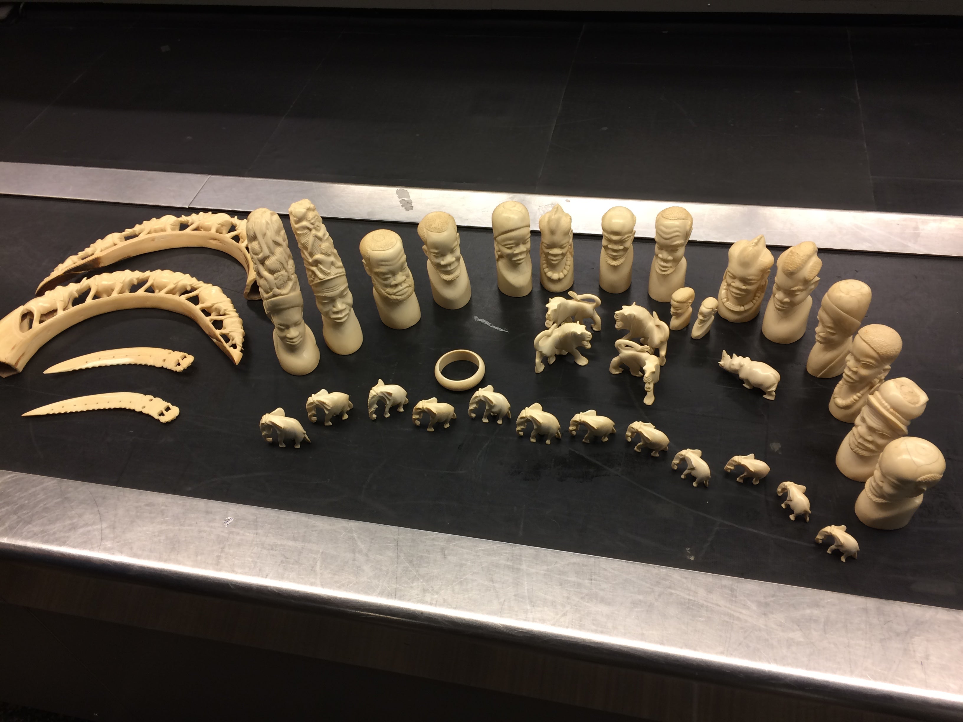 Inspectors from the US Fish and Wildlife service were alerted, and the entire collection — approximately 16 pounds of ivory — was seized.