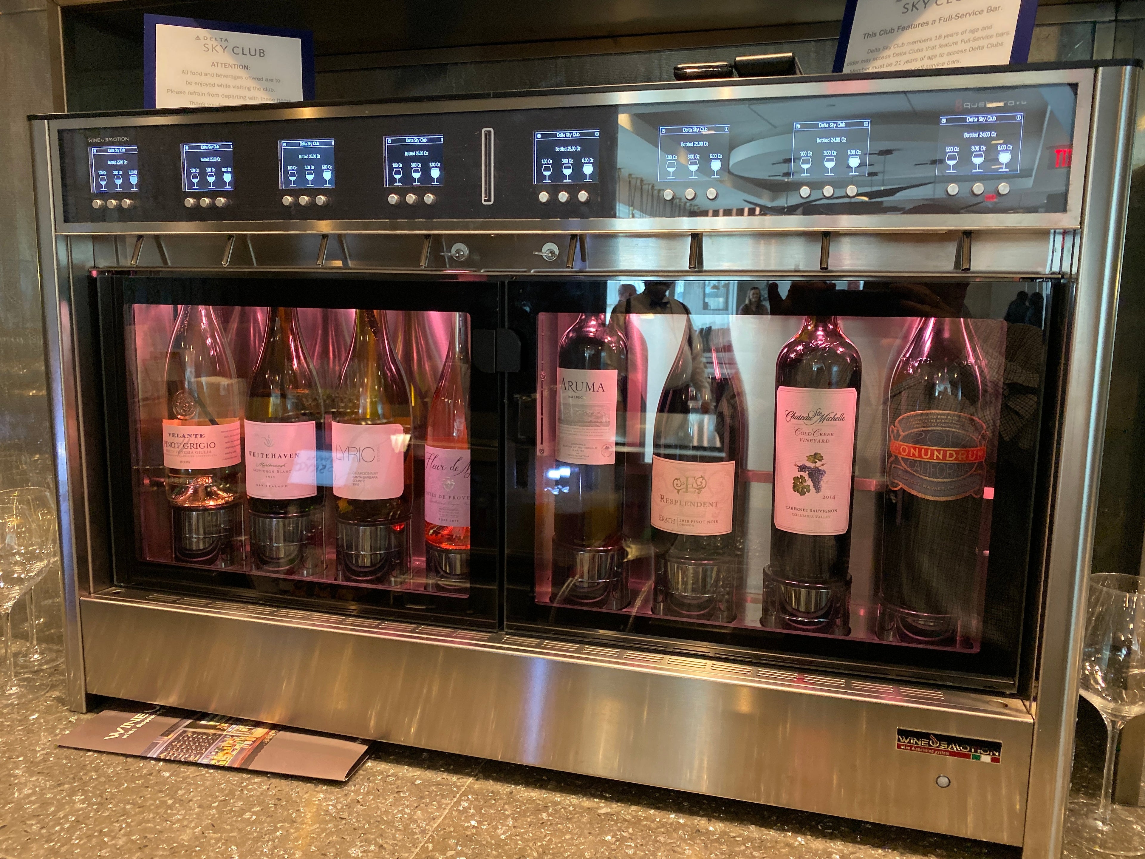 The full-service bar features seasonal cocktails and local beers from Abita, Gnarly Barley and Port Orleans. The extensive wine list is selected by Delta's Master Sommelier Andrea Robinson. The bar didn't have USB and power outlets, though.
