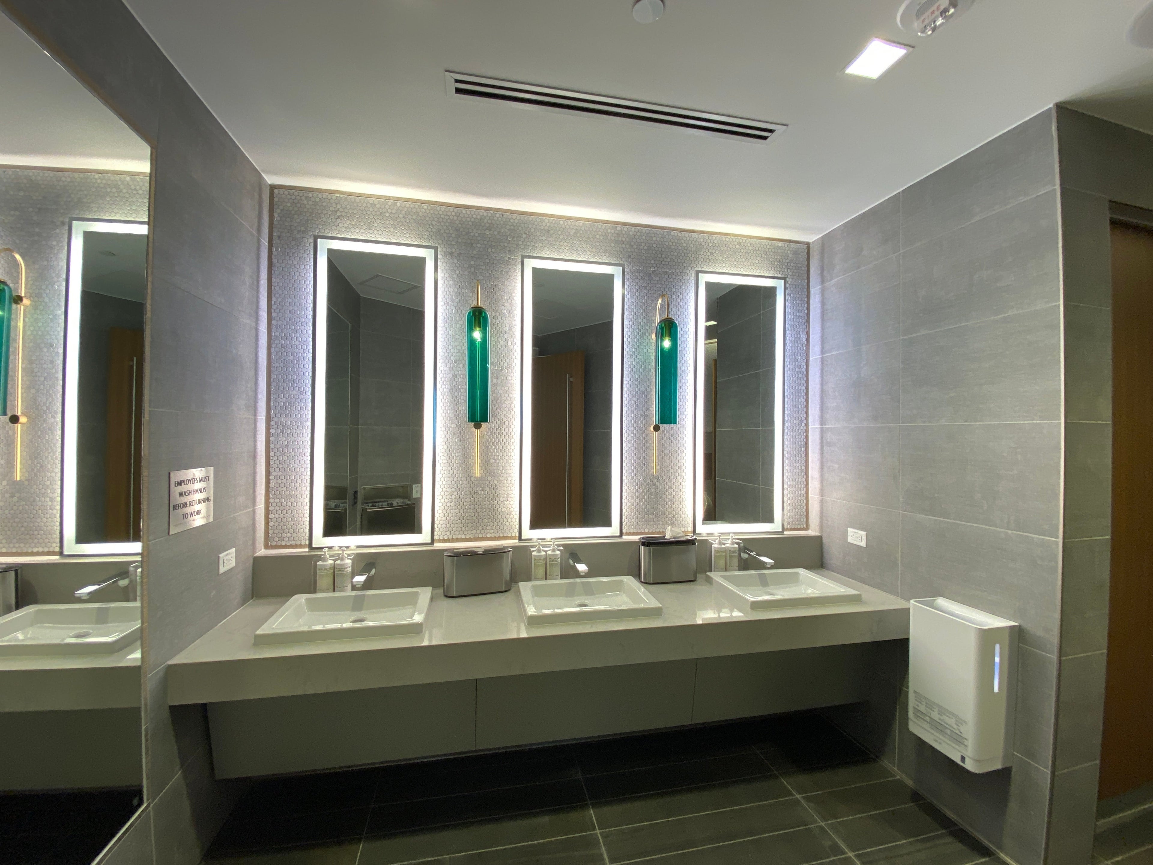 The restrooms are hotel quality, but what really impresses is the touchless entry on the door.