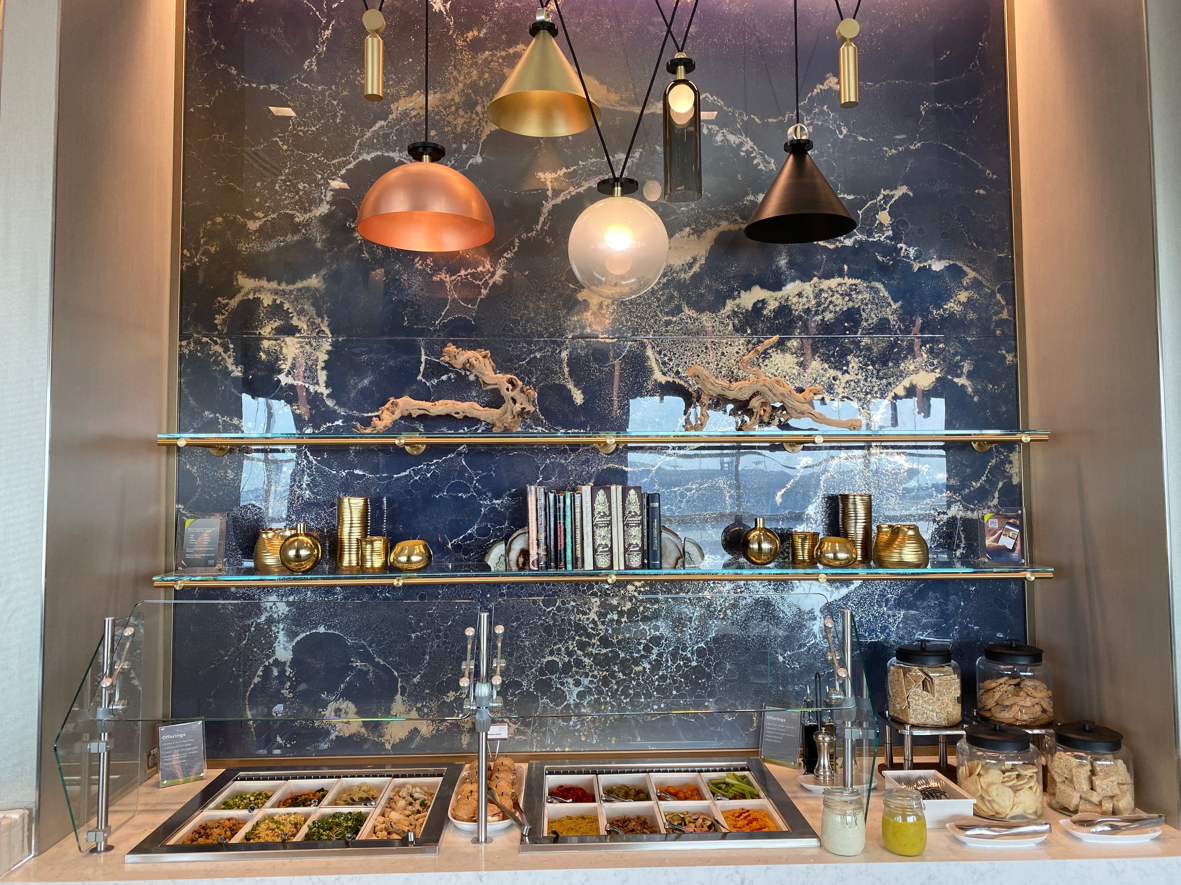 TPG visited the Sky Club a day ahead of the lounge's, and the airport's, official opening. Passengers were notably absent, but the food stations were working. And based on our sneak peek, we can say that this Sky Club is a stunner.
