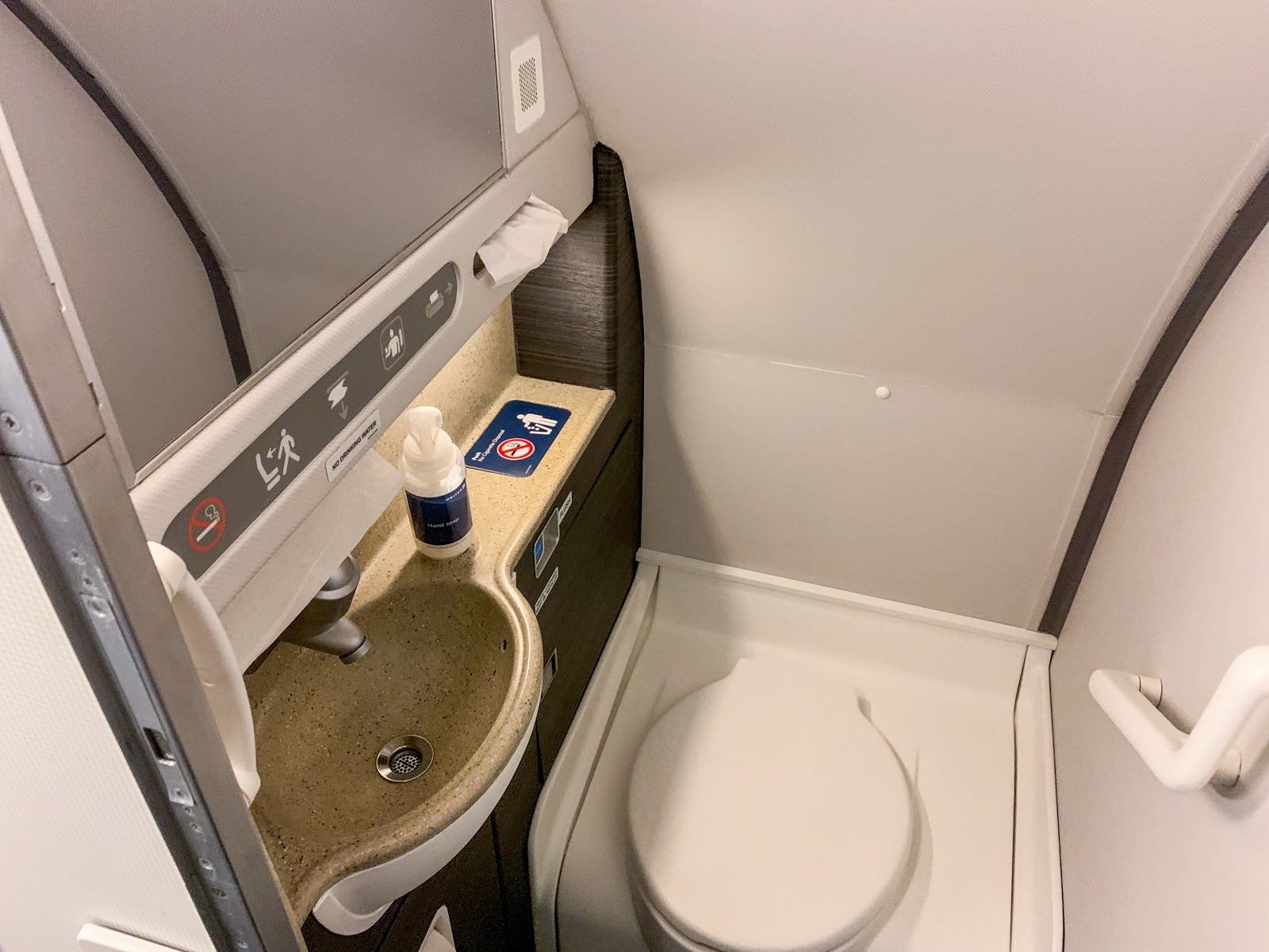 Despite being a larger plane, there is only one tiny lavatory at the very back.