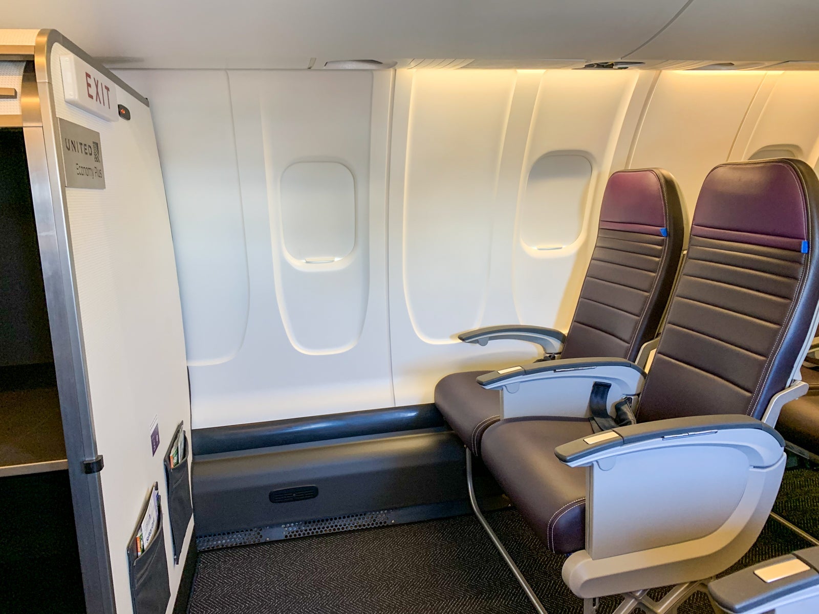 Row 7, the Economy Plus bulkhead, has tons of legroom. Almost too much.