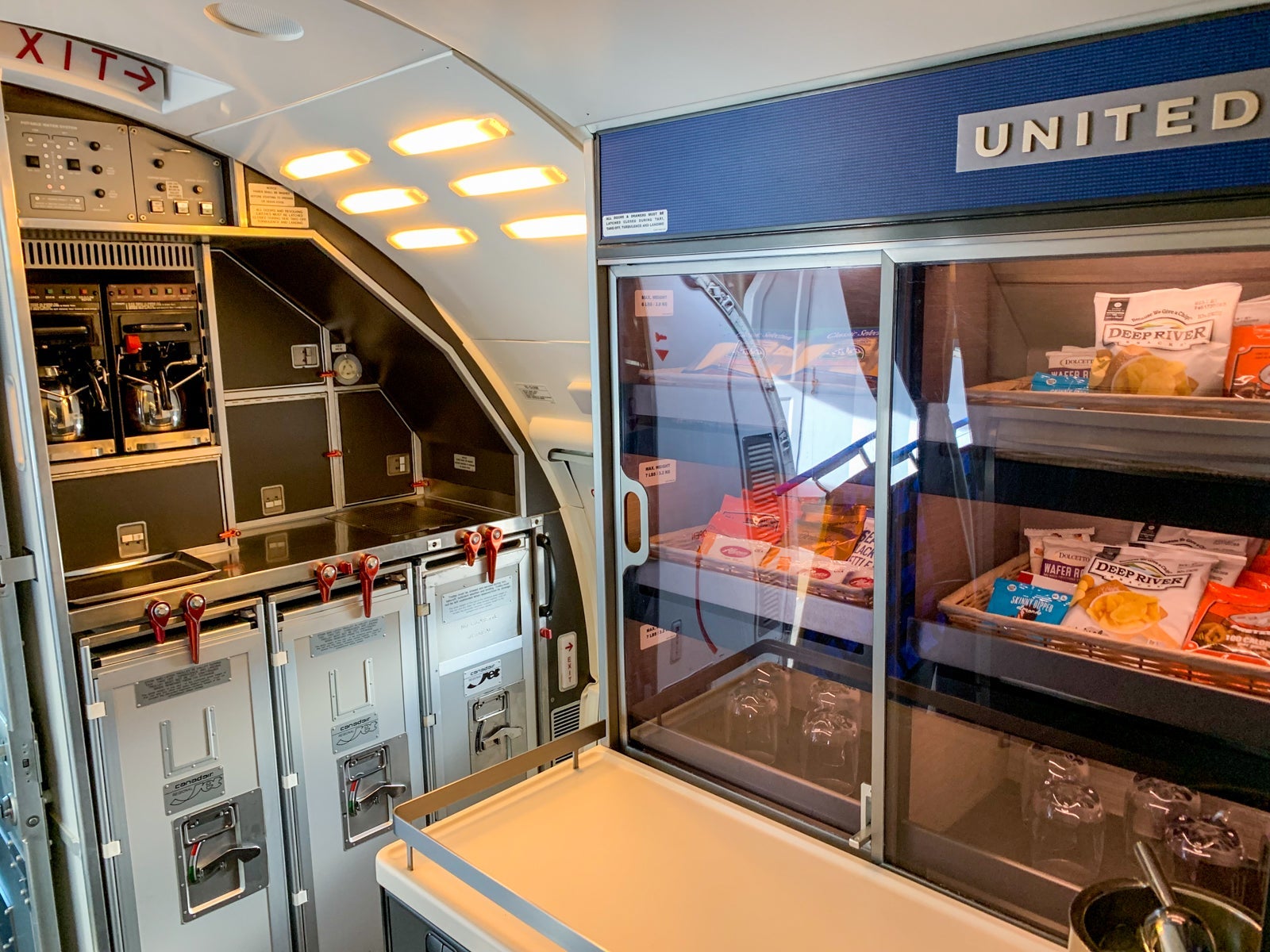 First-class flyers also have access to a self-service drink and snack station— not a typical offering on domestic flights, let alone a regional jet.