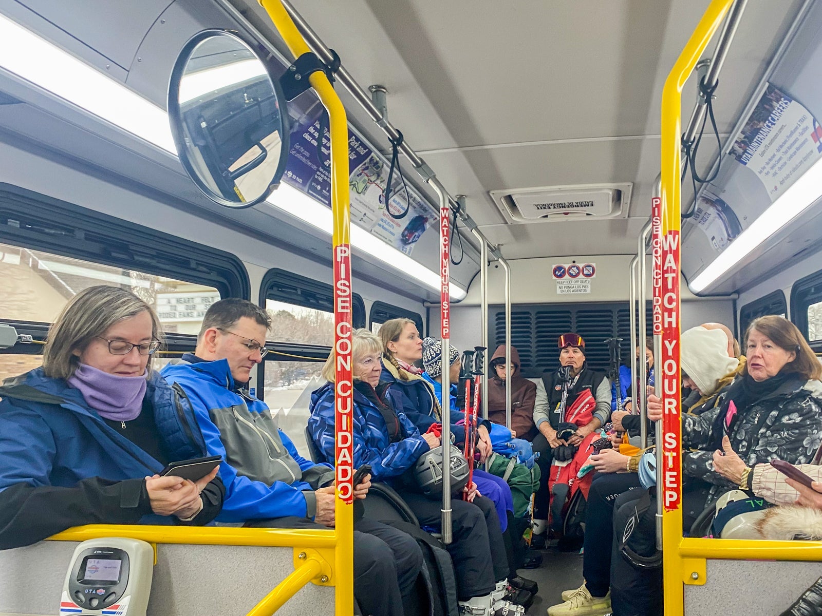 I was looking forward to the next day even more. With a venti extra shot iced latte in hand, I looked around at my fellow passengers on the ski bus and started chatting with a ski instructor, Jason, who asked to be identified by his first name only.