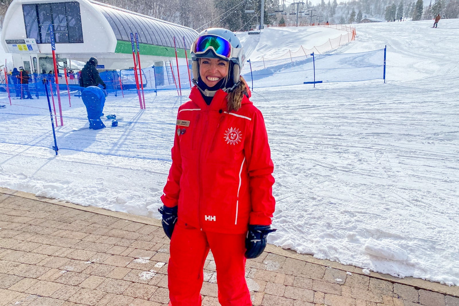 "Snowbasin offers a huge variety in skiing while being less crowded," Jason said. Snowbasin has two "magic carpets," rubber tracks that can help you dismount the lifts more easily, Jason added. Shimbo met us again that morning and put in a good word for us with our new ski teacher for the day, Jacey Davis. Davis is a former stay-at-home mom who became an instructor five years ago after learning to ski the previous year.