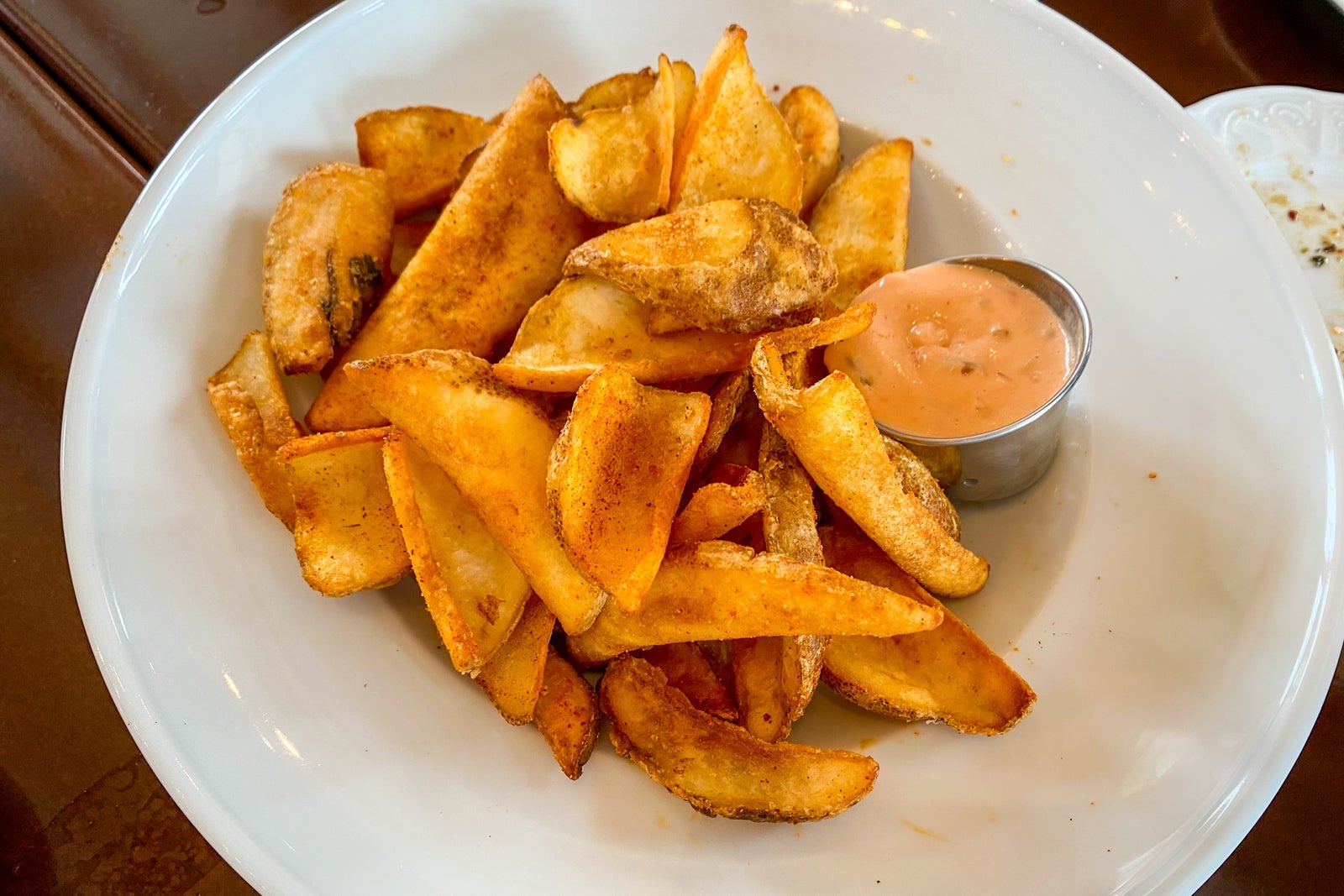 My friends and I dined at Cinnabar, which offers brunch and lunch; the menu features casual bites such as Bavarian pretzels, biscuits and gravy, fries with fry sauce (a mayo- and ketchup-based Utah specialty) and nachos. There were also other eclectic dishes like potato-crusted salmon, and bangers and mash.