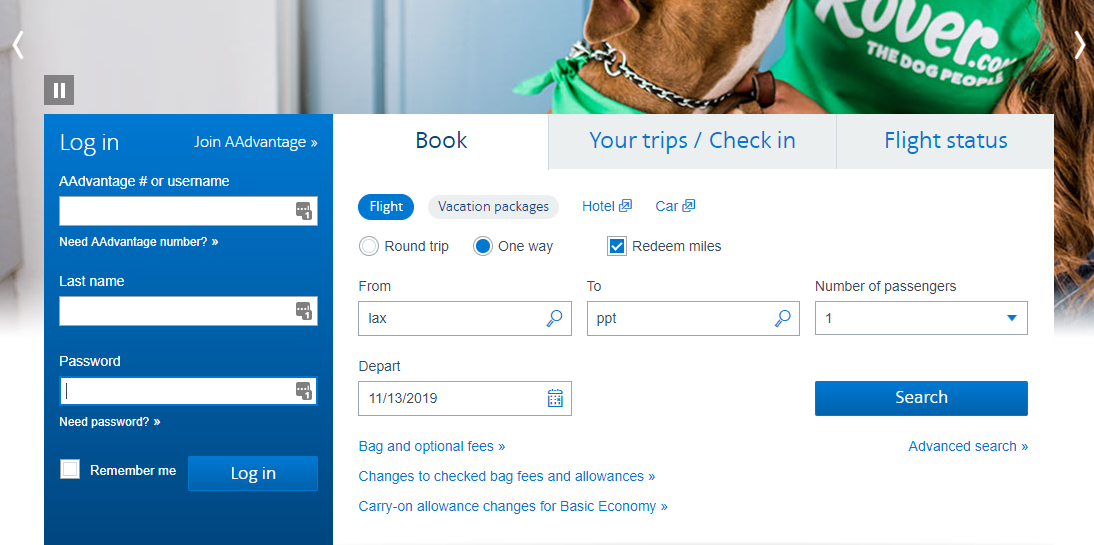 Since October 2018, American Airlines has made it possible to search and book Air Tahiti Nui award availability right on AA's website. There are no tricks involved. Just start your award search right on the AA.com homepage.