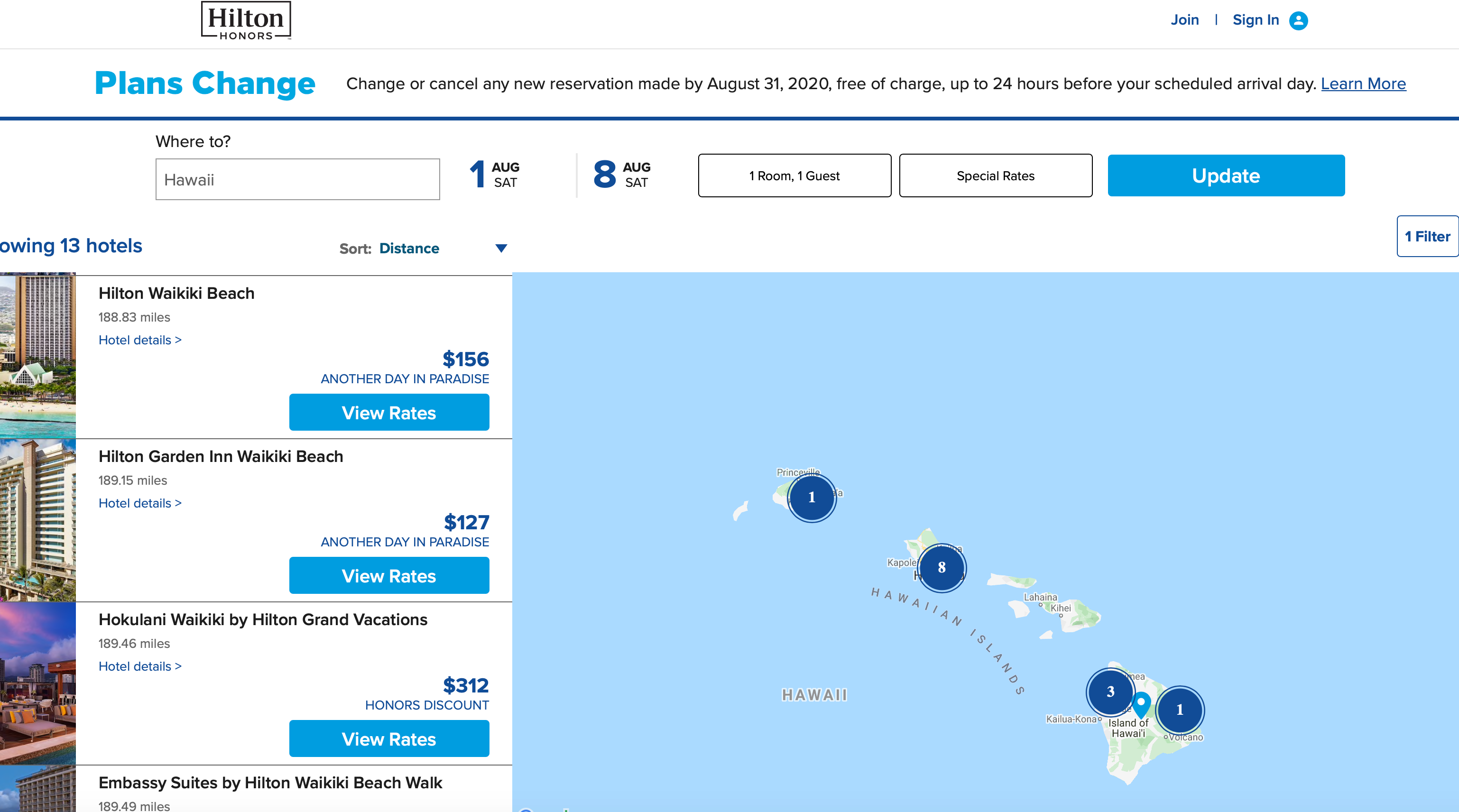 While many individual properties are offering reopening promotions, we're also seeing many deals coming from the corporate side. Hilton's "Stay longer in paradise" promotion offers a free night at the following rates: