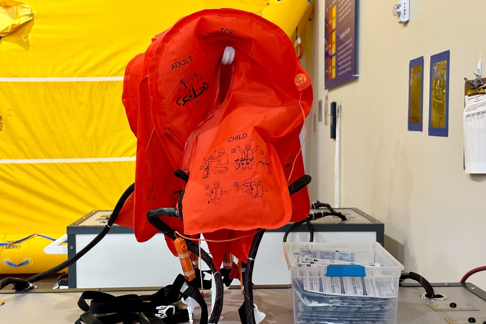 You'll find plenty of other emergency equipment here, including life rafts, exit door trainers and life vests.