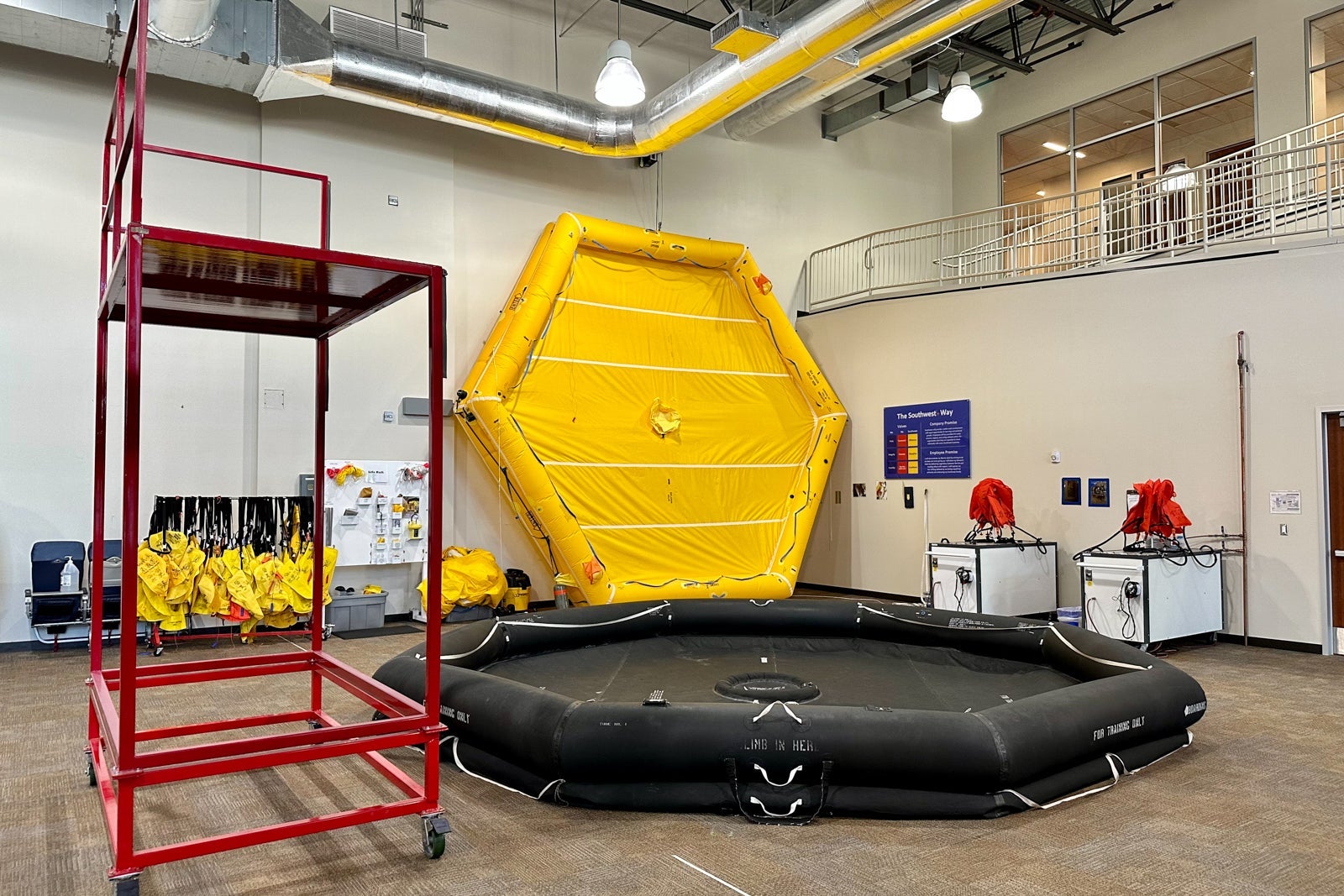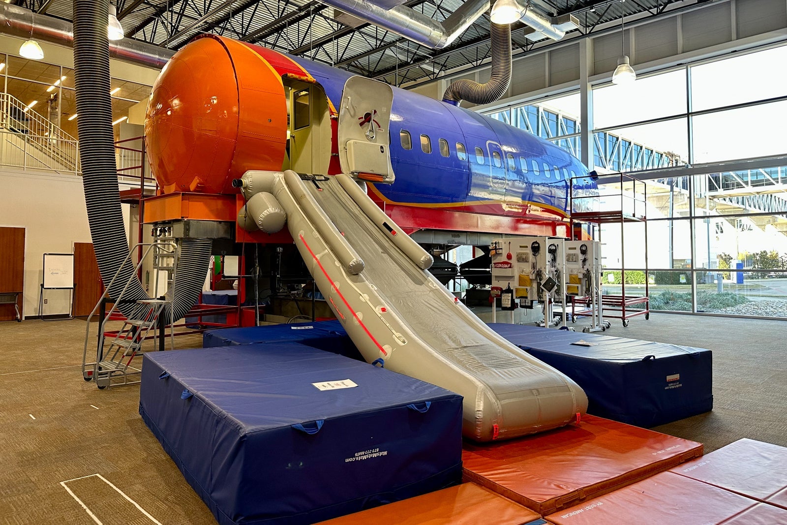 In addition to service delivery, flight attendants need to learn how to handle inflight emergencies, and Southwest has an area at its headquarters dedicated to just that.