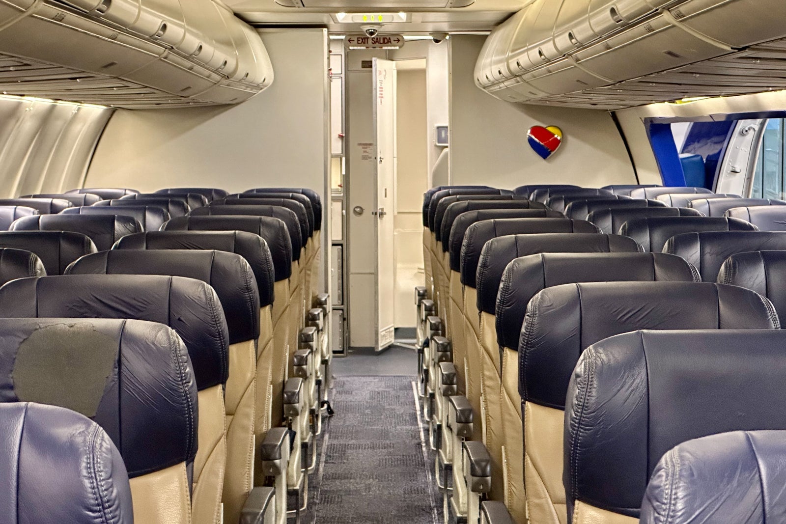 The cabin itself comes from a retired Southwest jet, and it still features the original seats and overhead bins.