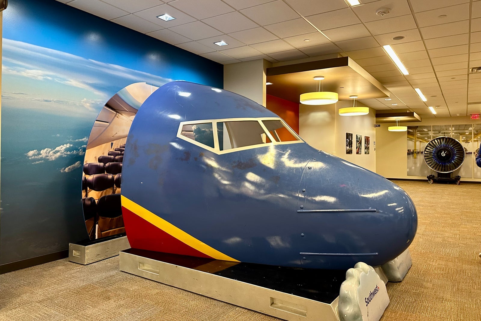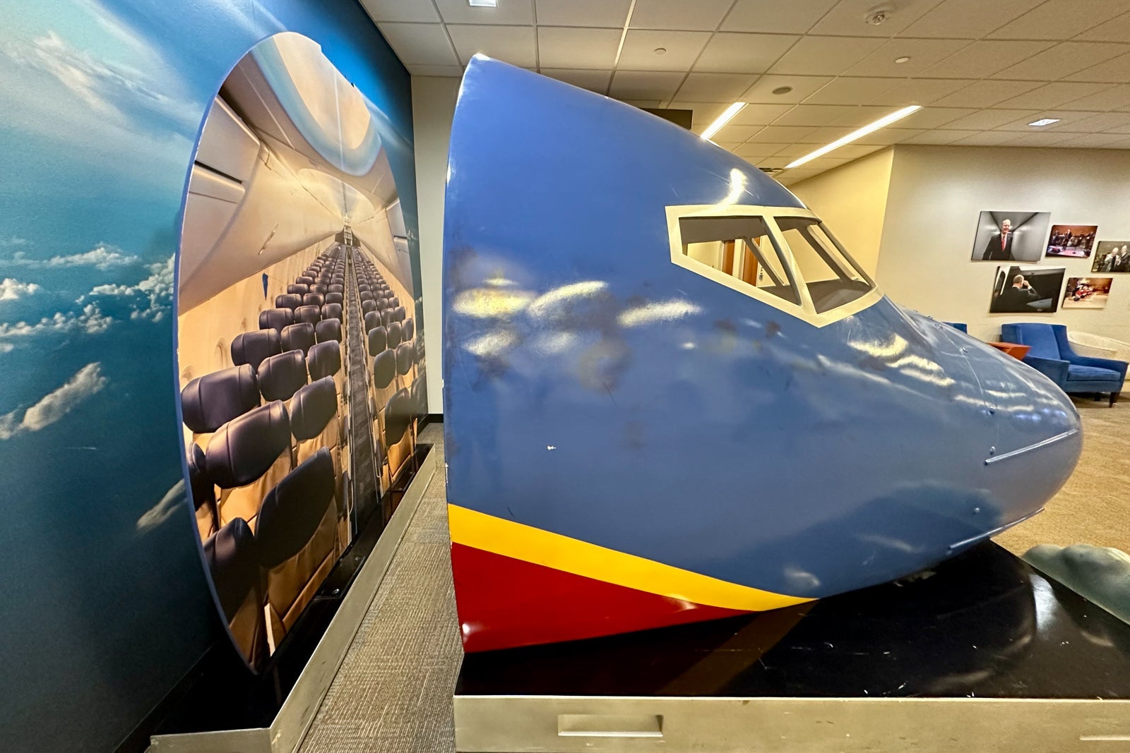 Before they graduate, they need to put their learning into practice. While they could theoretically head to nearby Dallas Love Field (DAL), which is located just a stone's throw away, Southwest has a mock-up of a check-in lobby on-site.