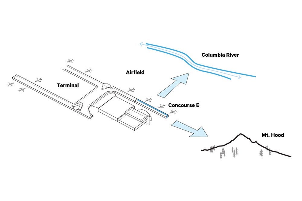 "When you get down to the end of the concourse, it's the grand moment," said Michelle Vo, a principal at Hennebery Eddy Architects, who worked on the extension project. That moment shows off one of Portland's best known natural icons: Mount Hood.