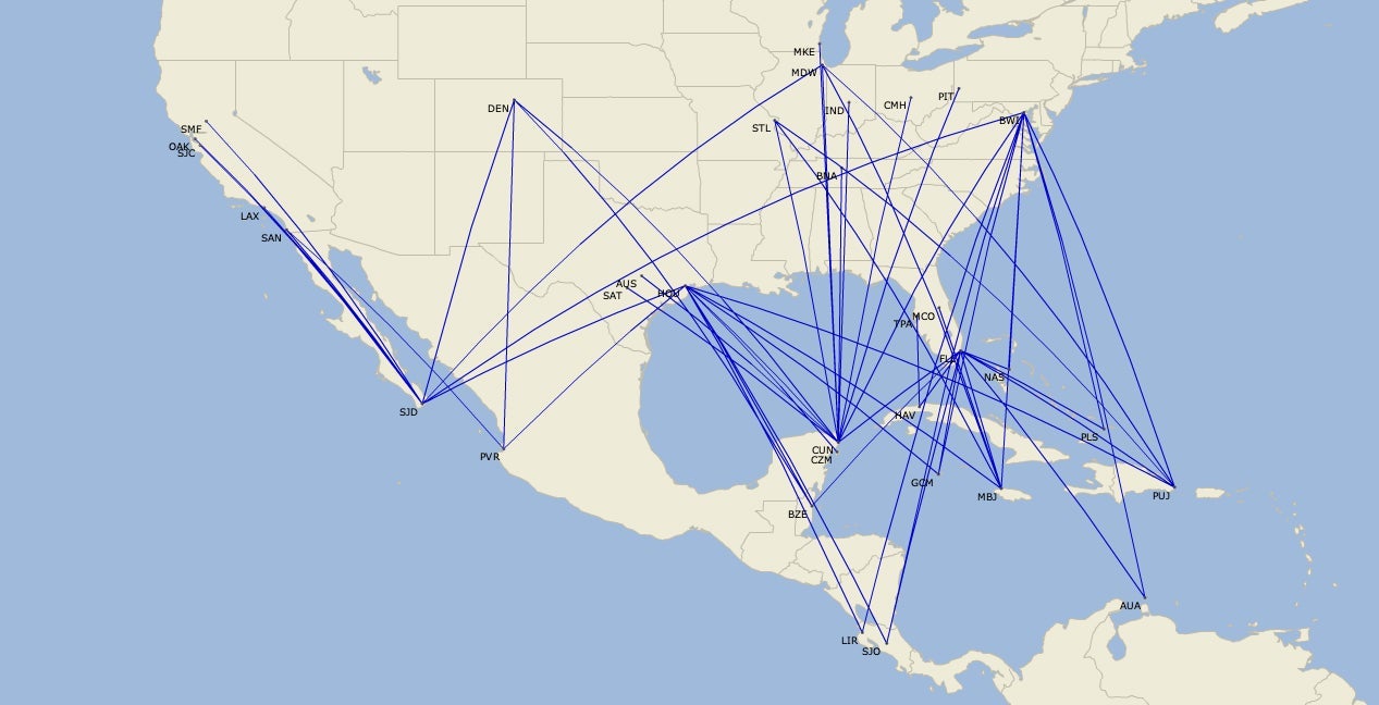 Southwest operates roughly 46 international flights on most days to Aruba, the Bahamas, Belize, the Cayman Islands, Costa Rica, Cuba, the Dominican Republic, Jamaica, Mexico, and Turks and Caicos, Cirium schedules show. Southwest operates 81 flights international flights on Saturdays.