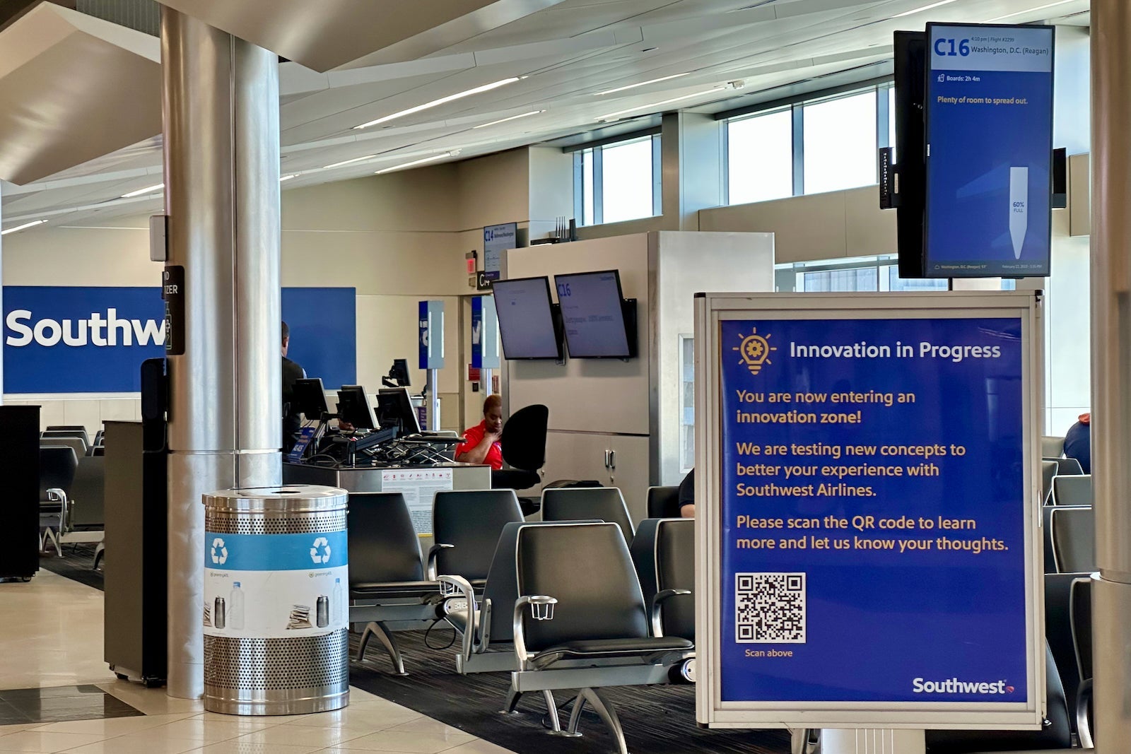 If you're wearing your headphones, though, you may not hear an important announcement — unless you're sitting at one of Southwest's test gates.