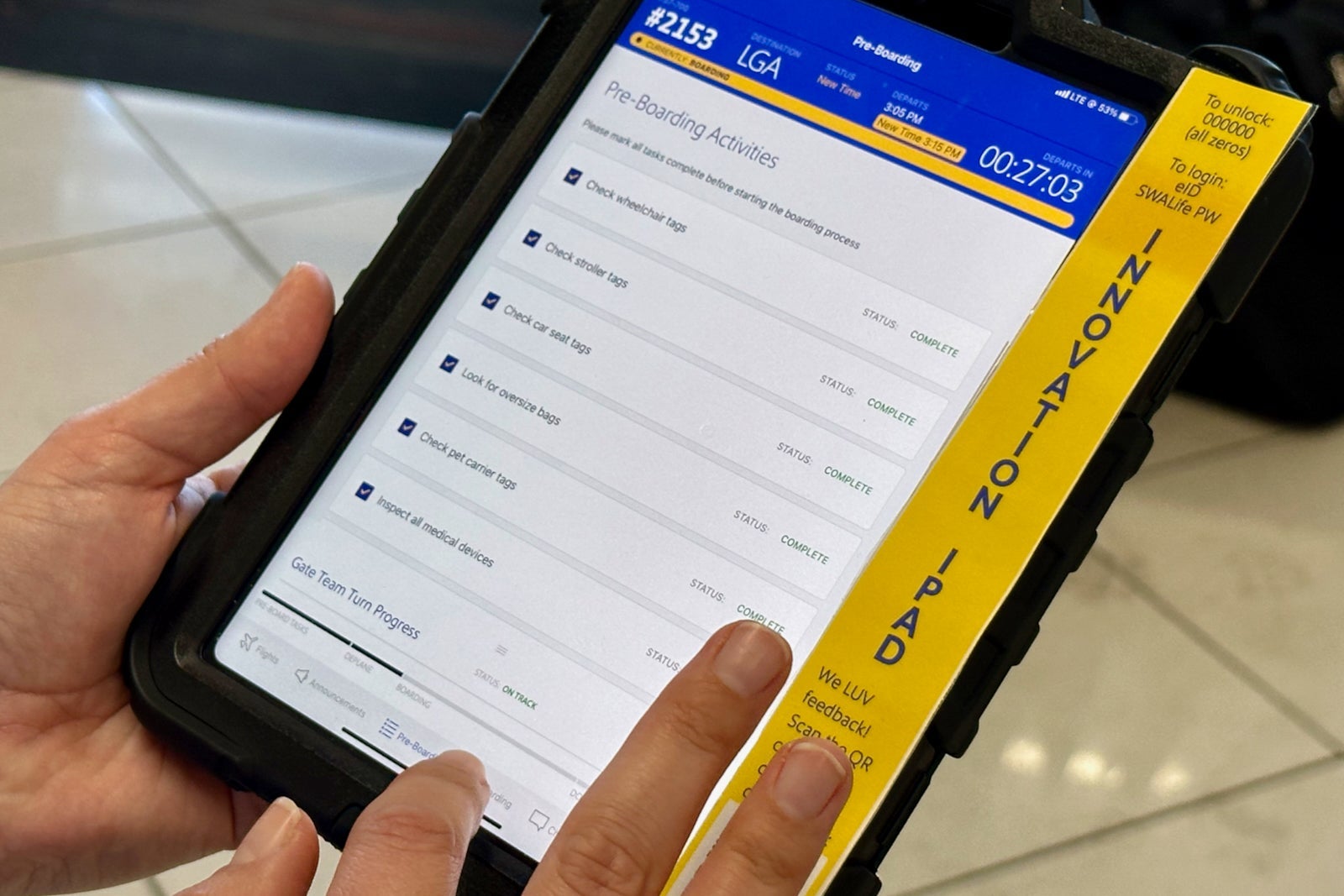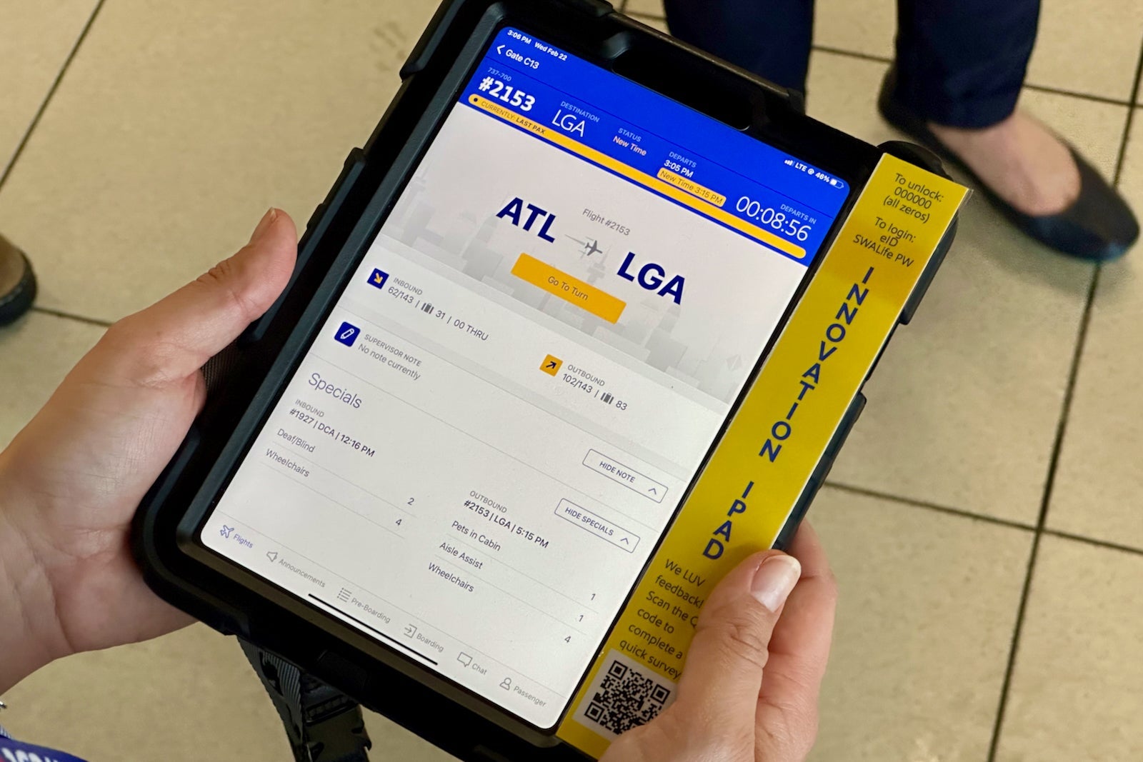 Speaking of agents, Southwest is making mobile-friendly versions of the tools that agents need to master a turn, including the ability to print bag tags, communicate with the onboard crew and monitor the number of wheelchair and special services passengers.
