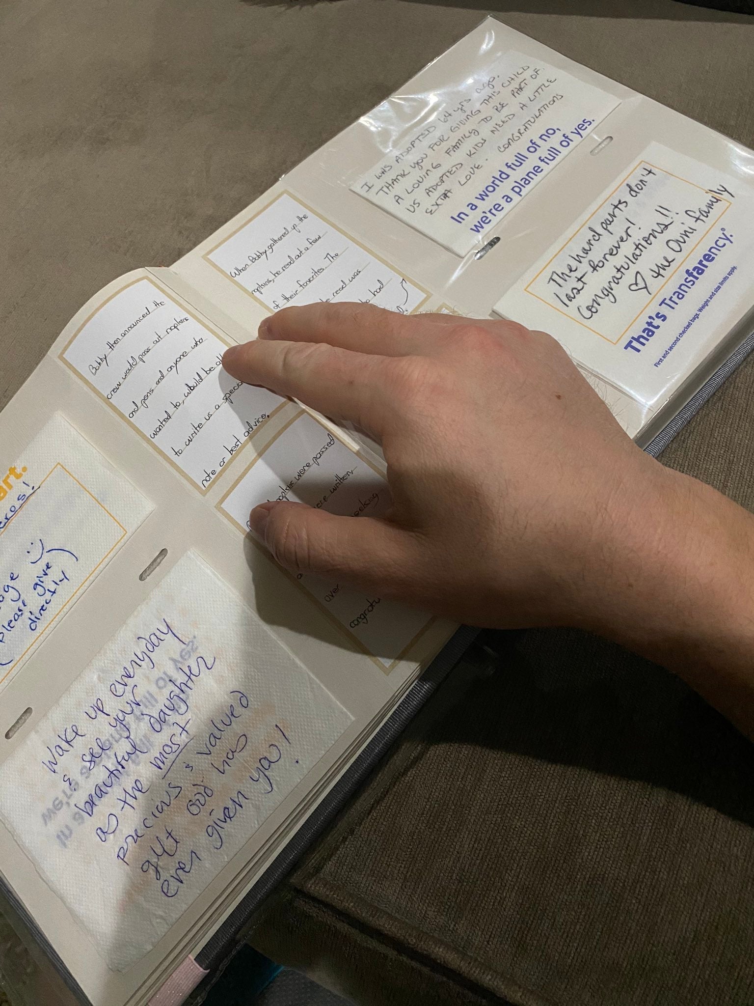 After the Moores got home, a family member helped create a keepsake album displaying all of the well-wishes. But the real impact of Bobby and Jenny's kind gesture went far beyond a handful of napkins, Dustin said.