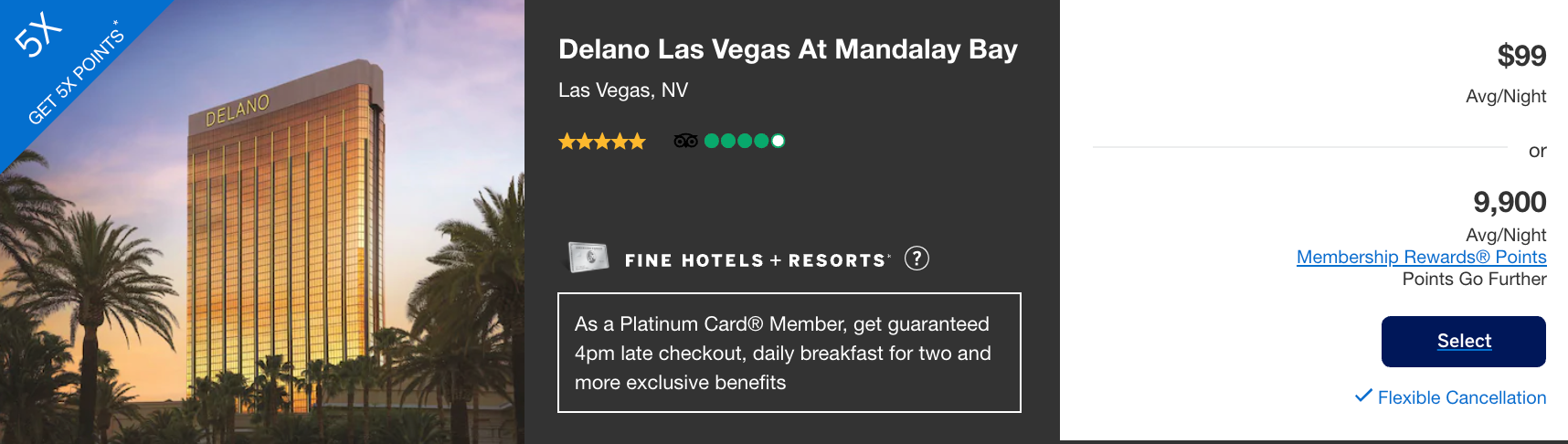 On my first night before hitting the road, I stayed at the Delano Las Vegas. With a base nightly rate of just $99 (plus fees), I nearly came out ahead when you consider all the benefits of FHR, including a $100 food and beverage credit and comped breakfast.