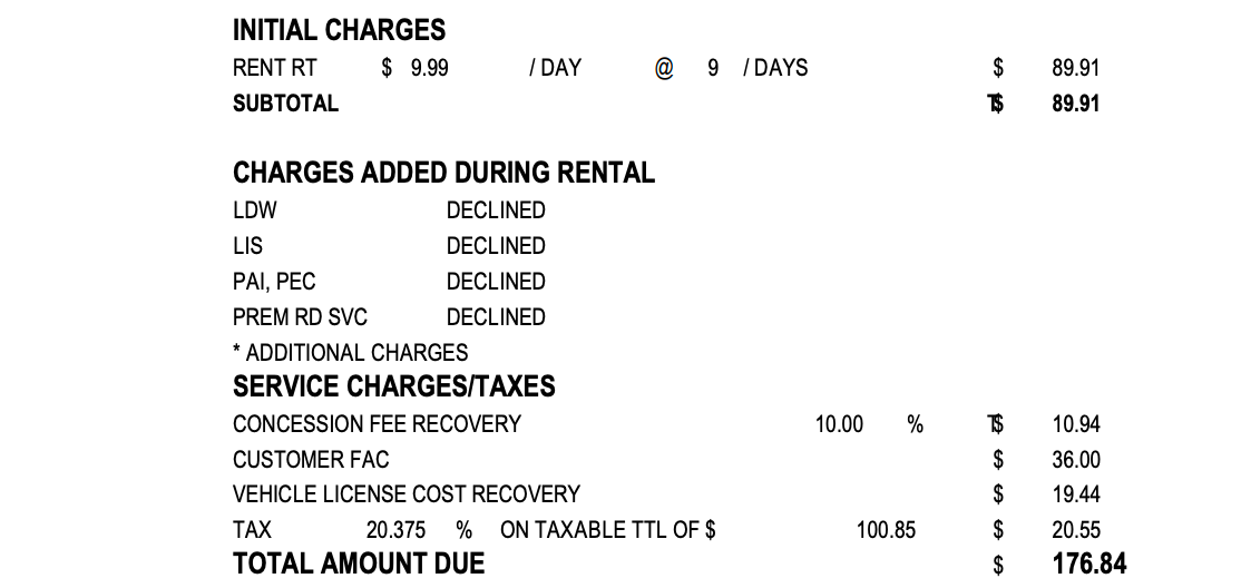 My total rental car cost came out to $176.84 -- a savings of at least $1,000 over a comparable one-way rental without this Hertz deal.