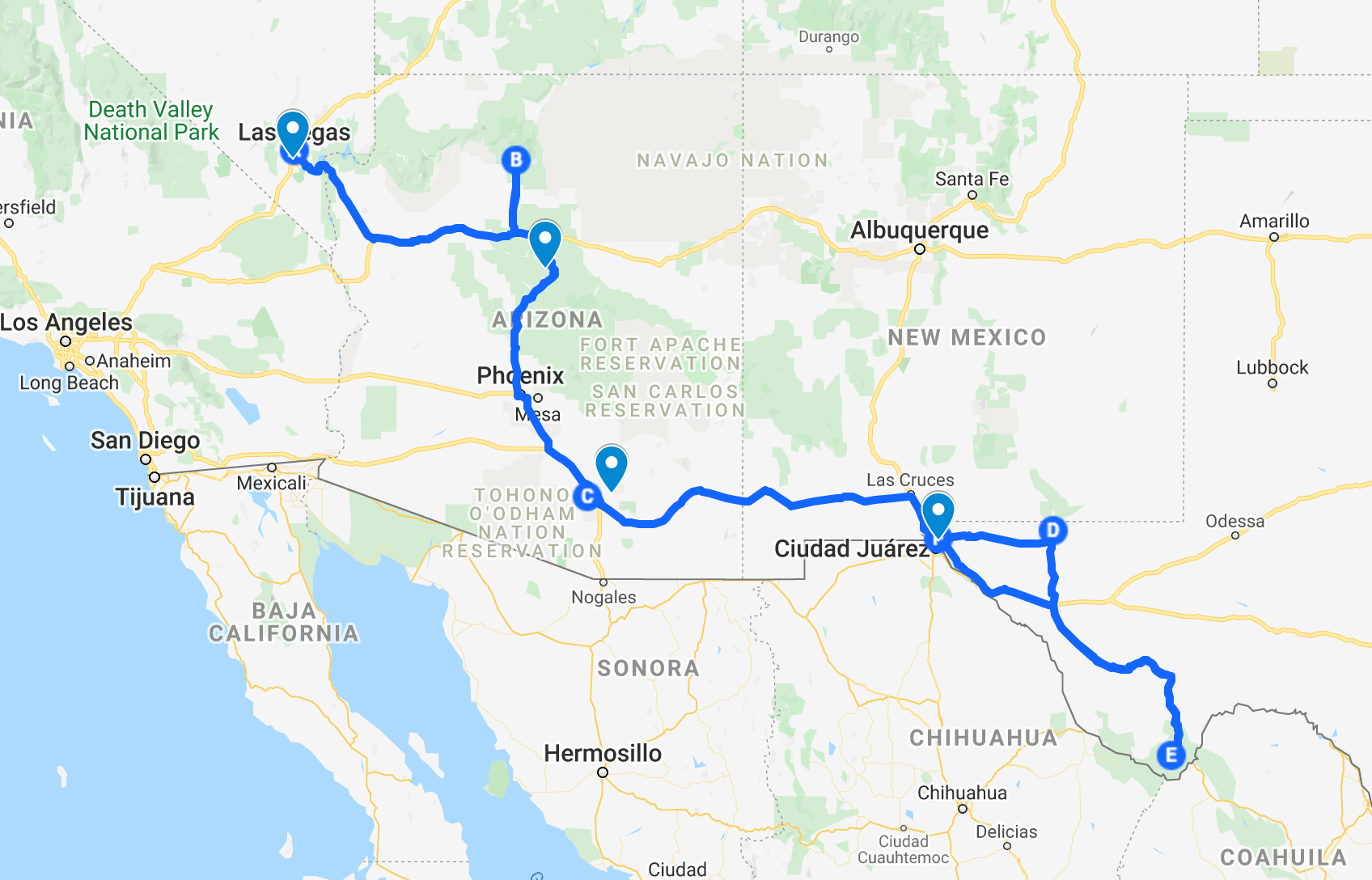 Those passing through the state were exempt from these restrictions. Therefore, you'll notice on the map that I drove through but did not visit anywhere in New Mexico.