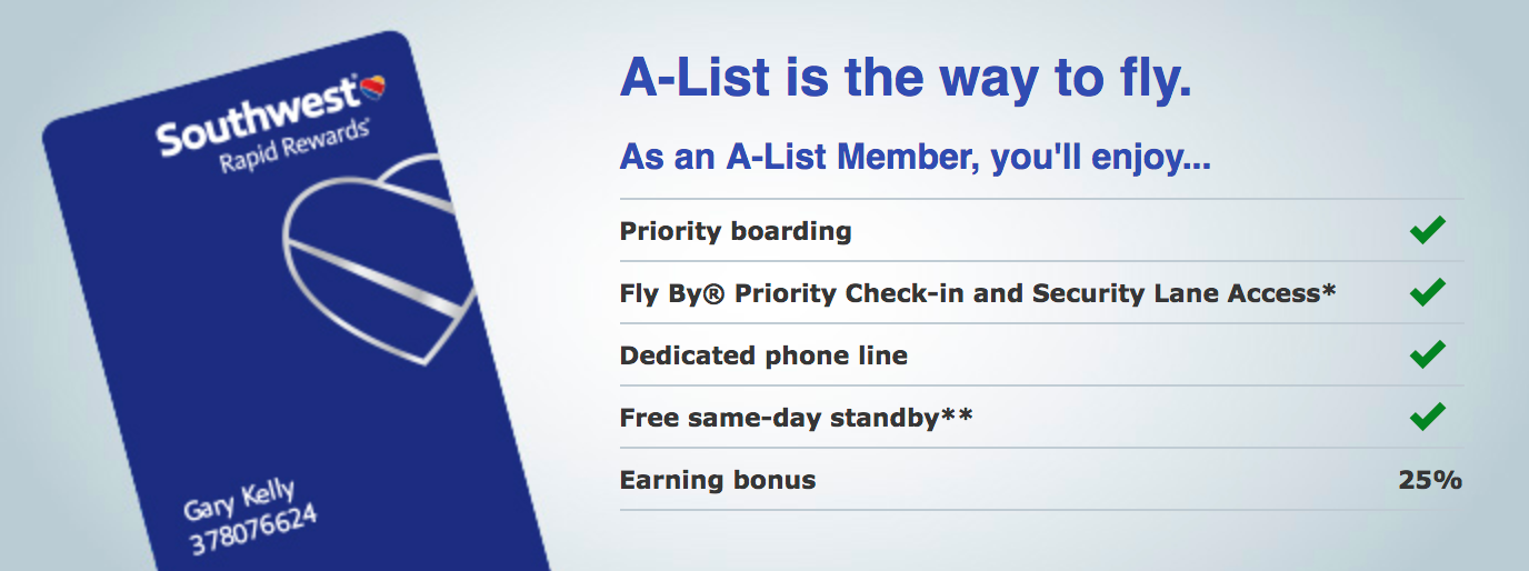 In our most recent elite status analysis, TPG values Southwest A-List status at $685. With it, you'll get priority boarding, a 25% point bonus, free same-day standby, priority check-in and security and a priority phone line. Earning A-List normally requires 25 qualifying one-way flights or 35,000 Tier Qualifying Points in a calendar year, so this is a great shortcut if you're planning to take a half-dozen or more Southwest flights in an upcoming 90-day period.