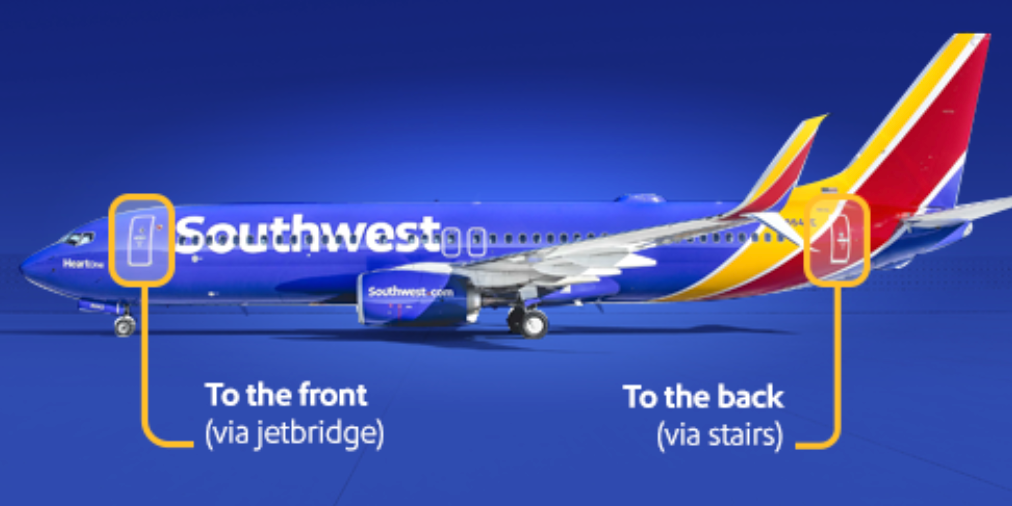 Southwest says that the new option is intended to make the boarding and deplaning process faster for passengers. With the new process, the carrier is informing passengers that those choosing to board or deplane through the rear door may have to go up (or down) a set of stairs and walk outside. The carrier also says that preboard passengers will be required to use the jetbridge.