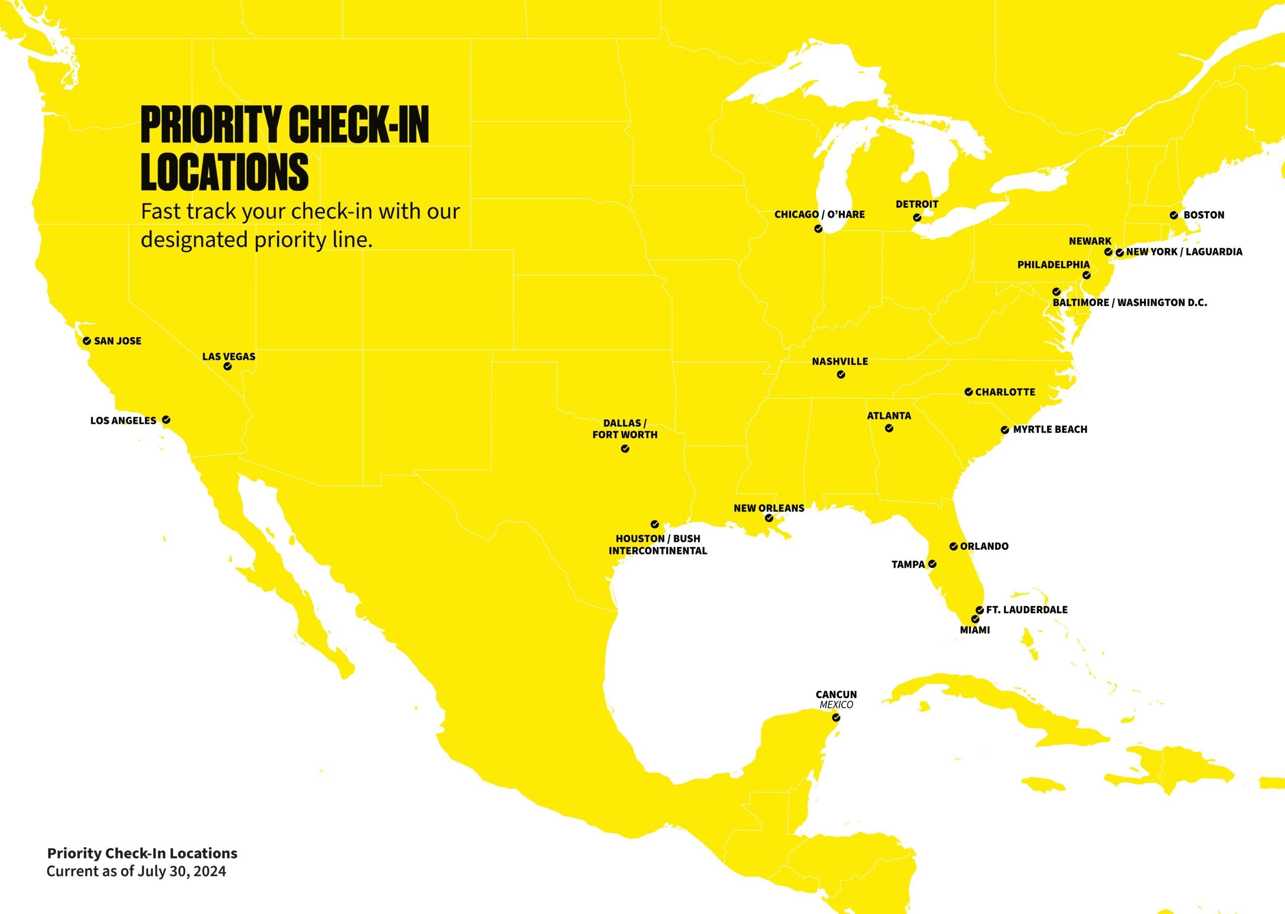 Beginning Aug. 27, Spirit will introduce priority check-in lanes at more than 20 airports nationwide. This lane will allow the airline's most premium travelers to receive front-of-the-line access to a check-in agent.