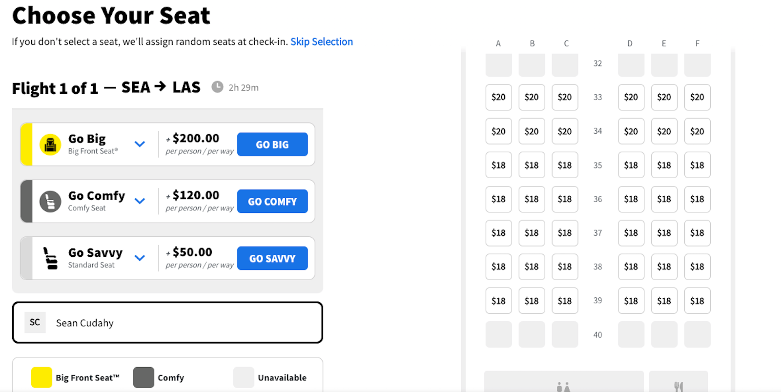 When selecting the Go Big fare, you'll have the chance to pick which of its Big Front Seats you'd like at no added charge.