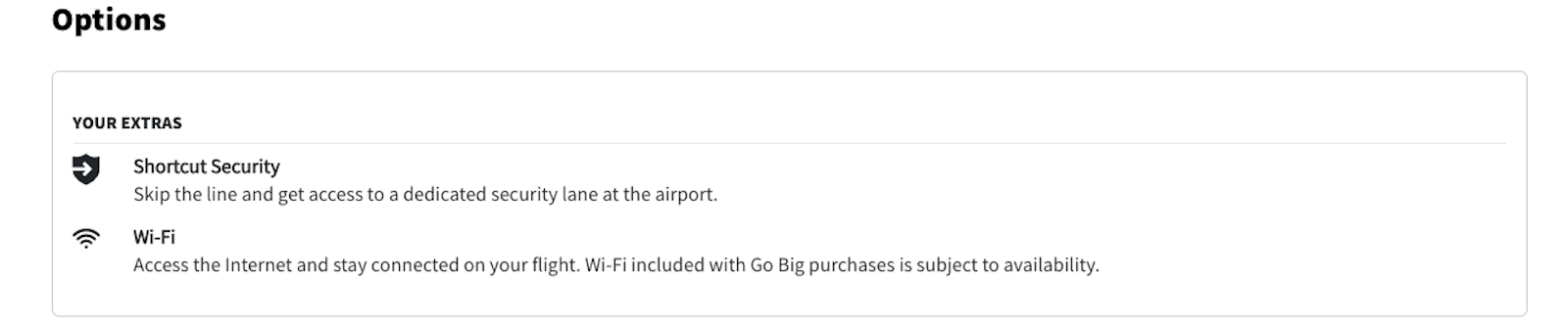The page also alerts you to the extra items you'll receive for this all-inclusive ticket, including access to free Wi-Fi and a dedicated security lane (though if you're a TSA PreCheck member, that's probably still preferable).