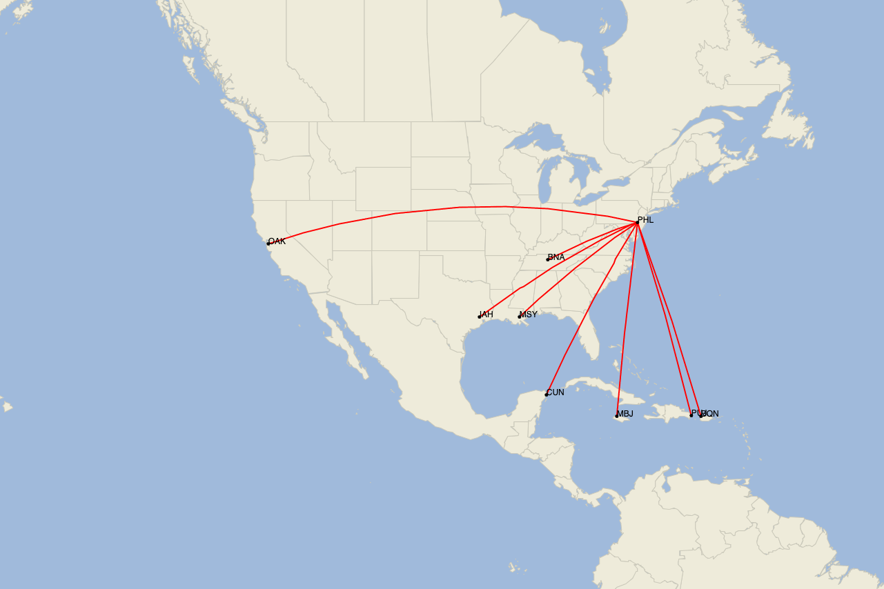 You'll find the full list of new routes at the bottom of the post, but highlights include tapping into two unserved markets from Philly through a big growth spurt in terms of airport real estate.