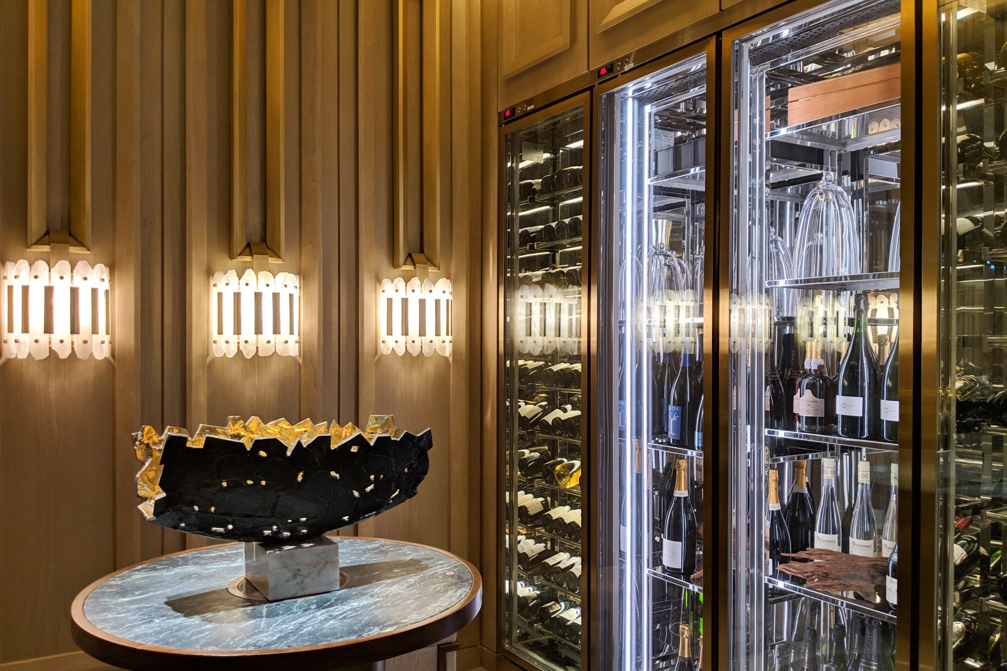 The hotel offers more than 800 different wines, including 100 Champagnes — many of which are on display throughout L'Envol.