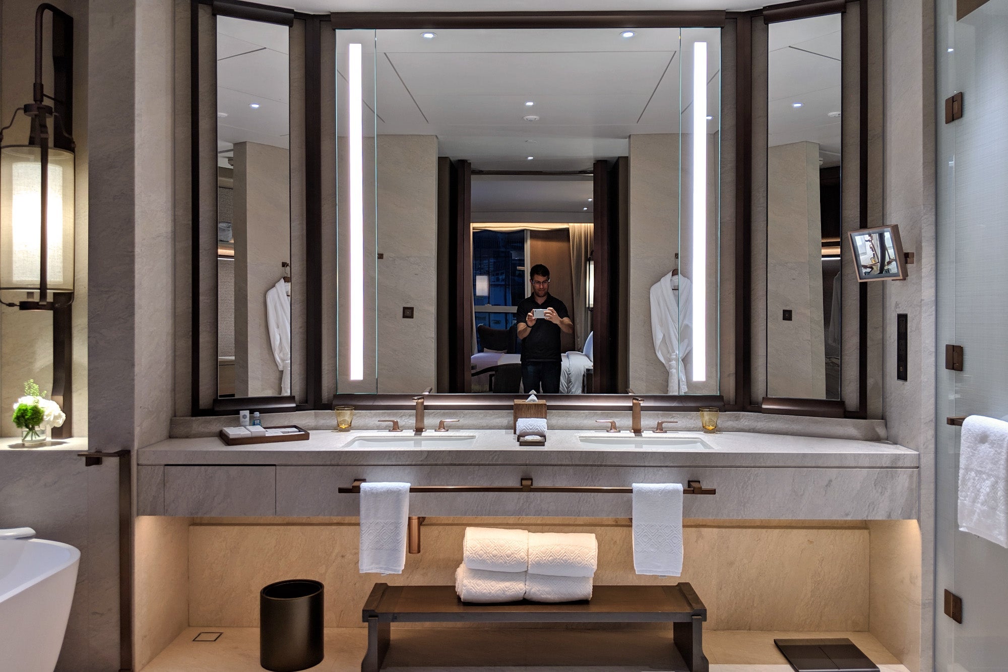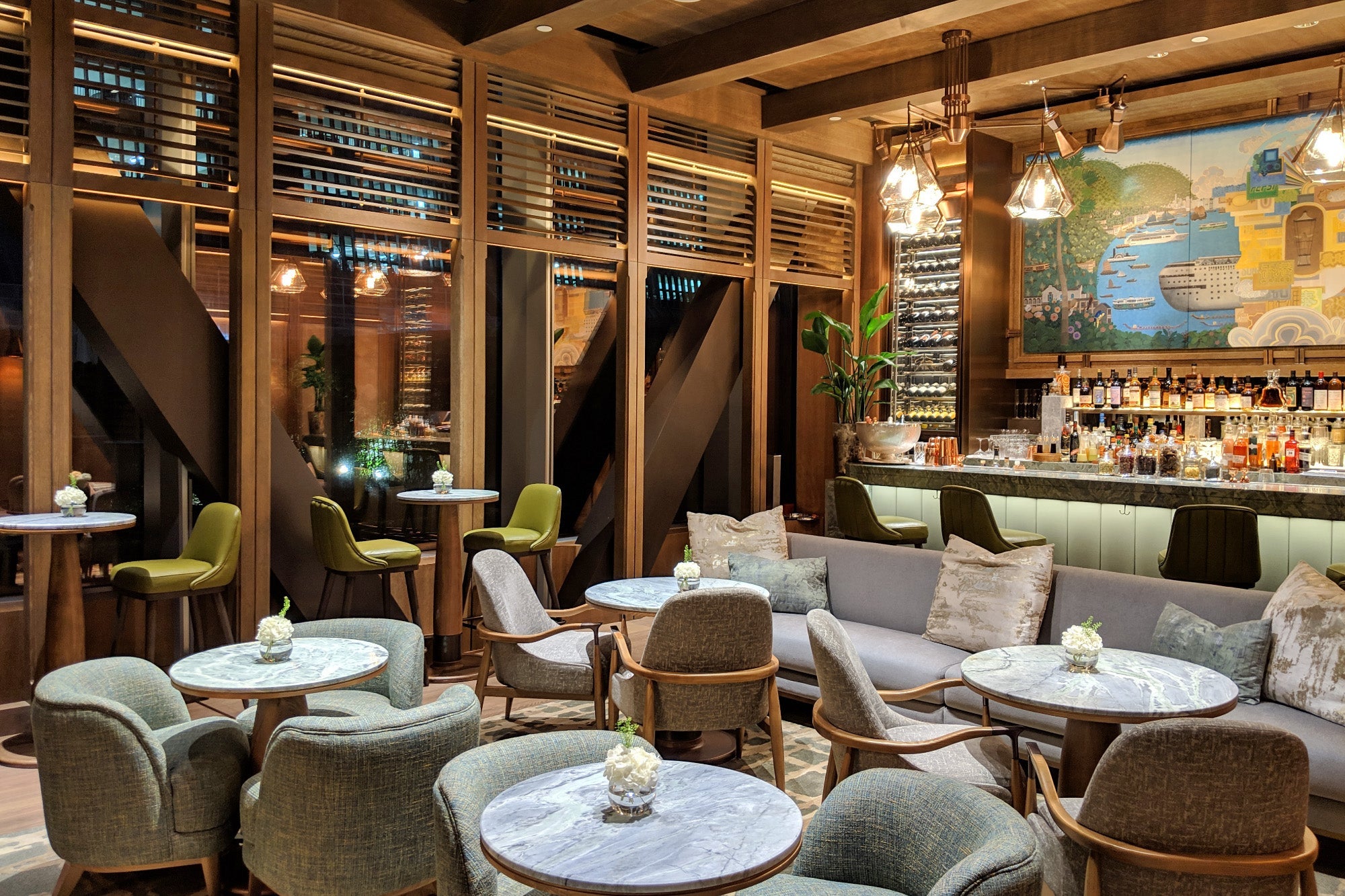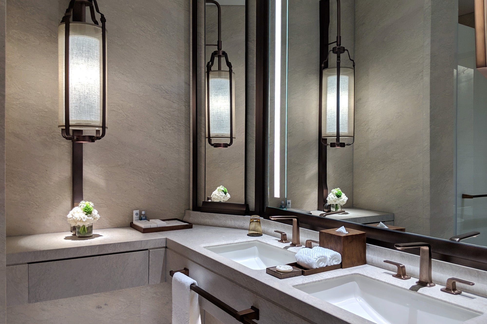 From the marble floors to the grand elevated lobby and the thoughtful light fixtures — inspired by "old Hong Kong" street lamps I'm told — it's clear that no expense was spared here.