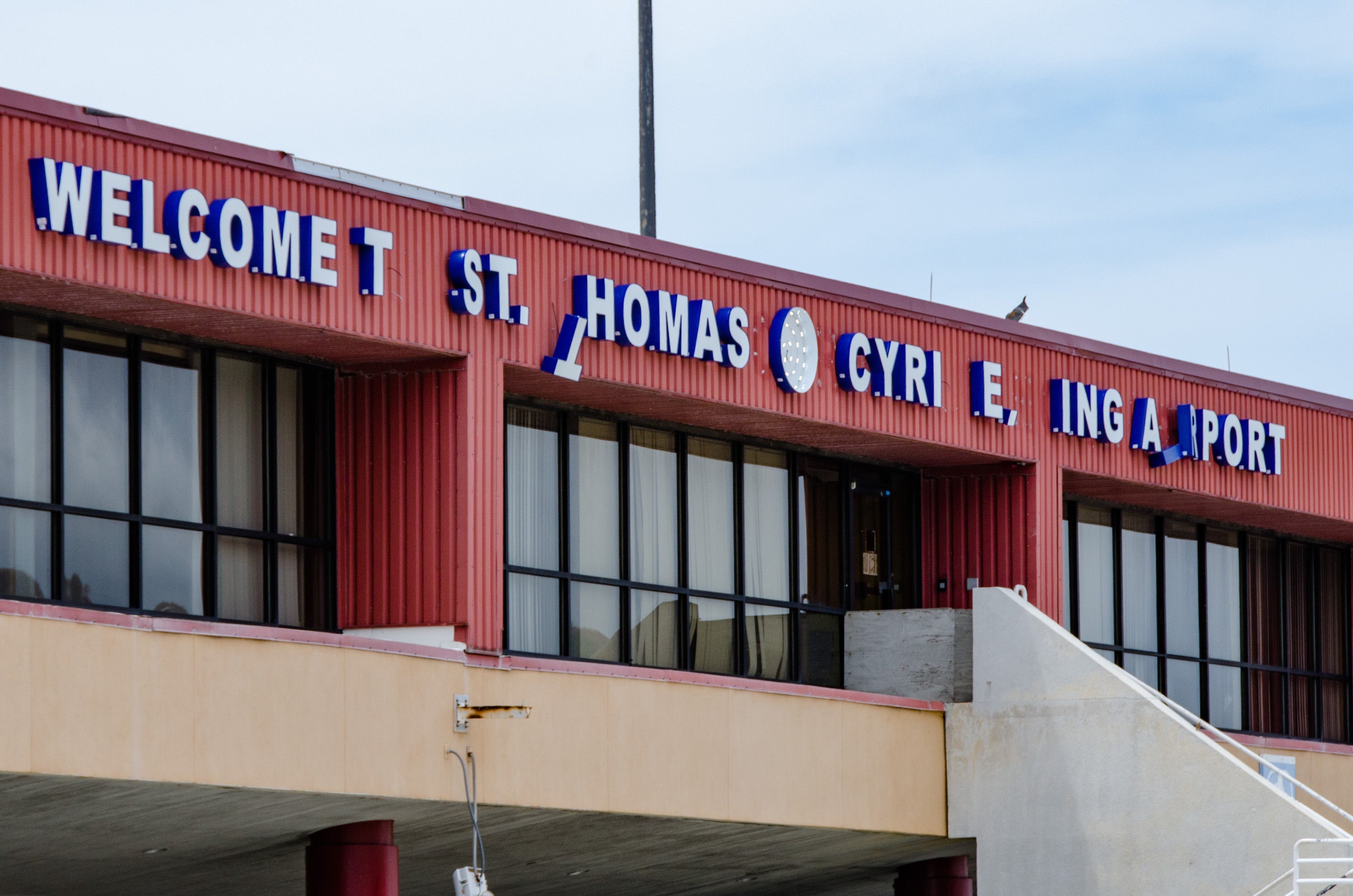 Damage from the Category 5 Hurricane Irma is immediately apparent when you land at the Cyril E. King Airport. Image by K.C. Wilsey of FEMA.