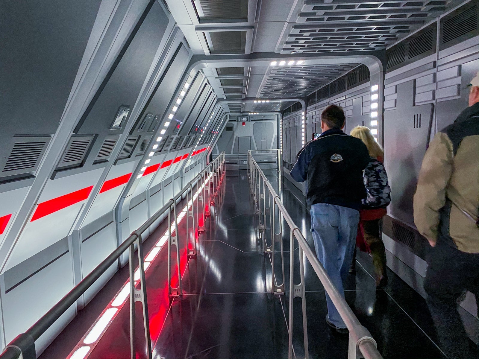 The fun picks up as the seated trackless ride vehicle barely evades blasters, red-hot lightsabers coming through the walls, Kylo Ren himself and more. I refuse to spoil everything, but you aren't just watching a battle unfold: You're in it, and will only barely escape by flying through space and landing on friendly soil.