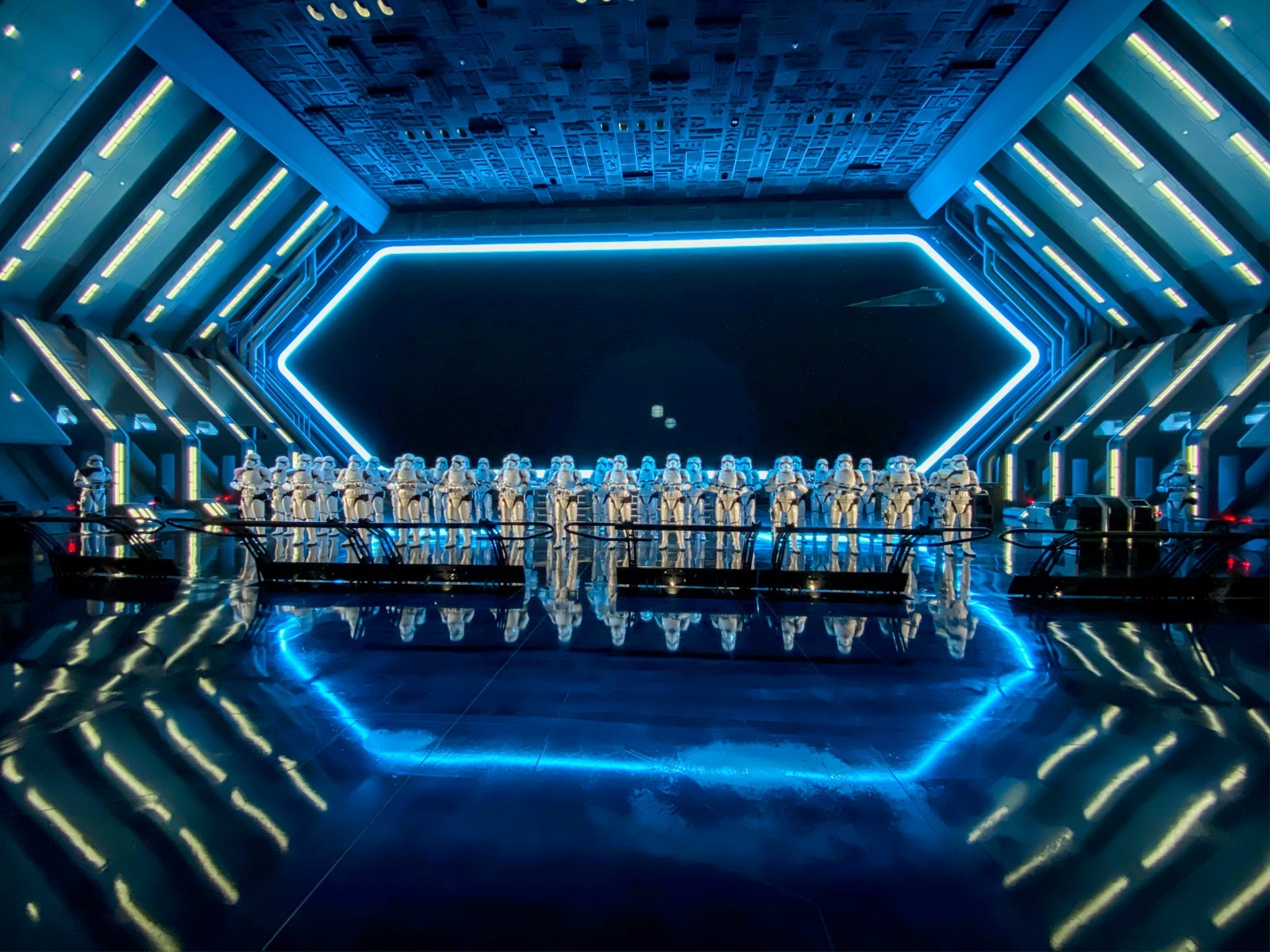 As the doors to the next portion of the ride open, you're greeted by a legion of stormtroopers and other (very bossy) members of the First Order. This is where things get really impressive: The massive scale of the room and the realistic movements of the stormtroopers make you feel as if you're truly on a star ship. Heck, maybe we were. This is Disney after all.