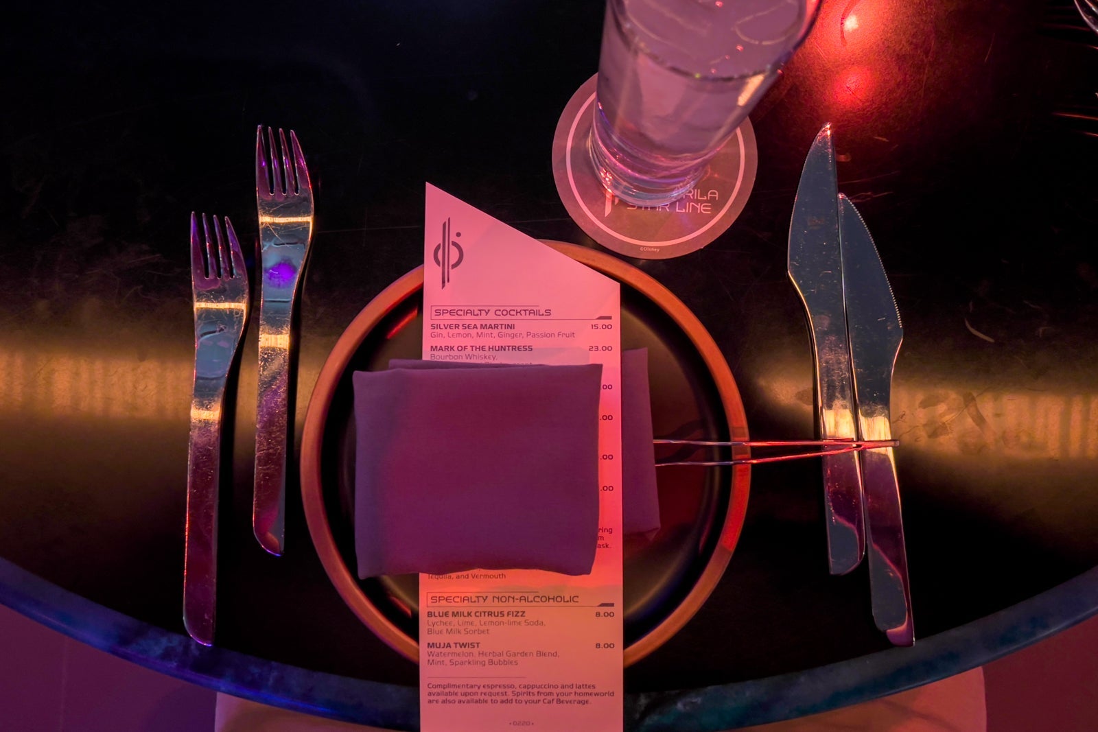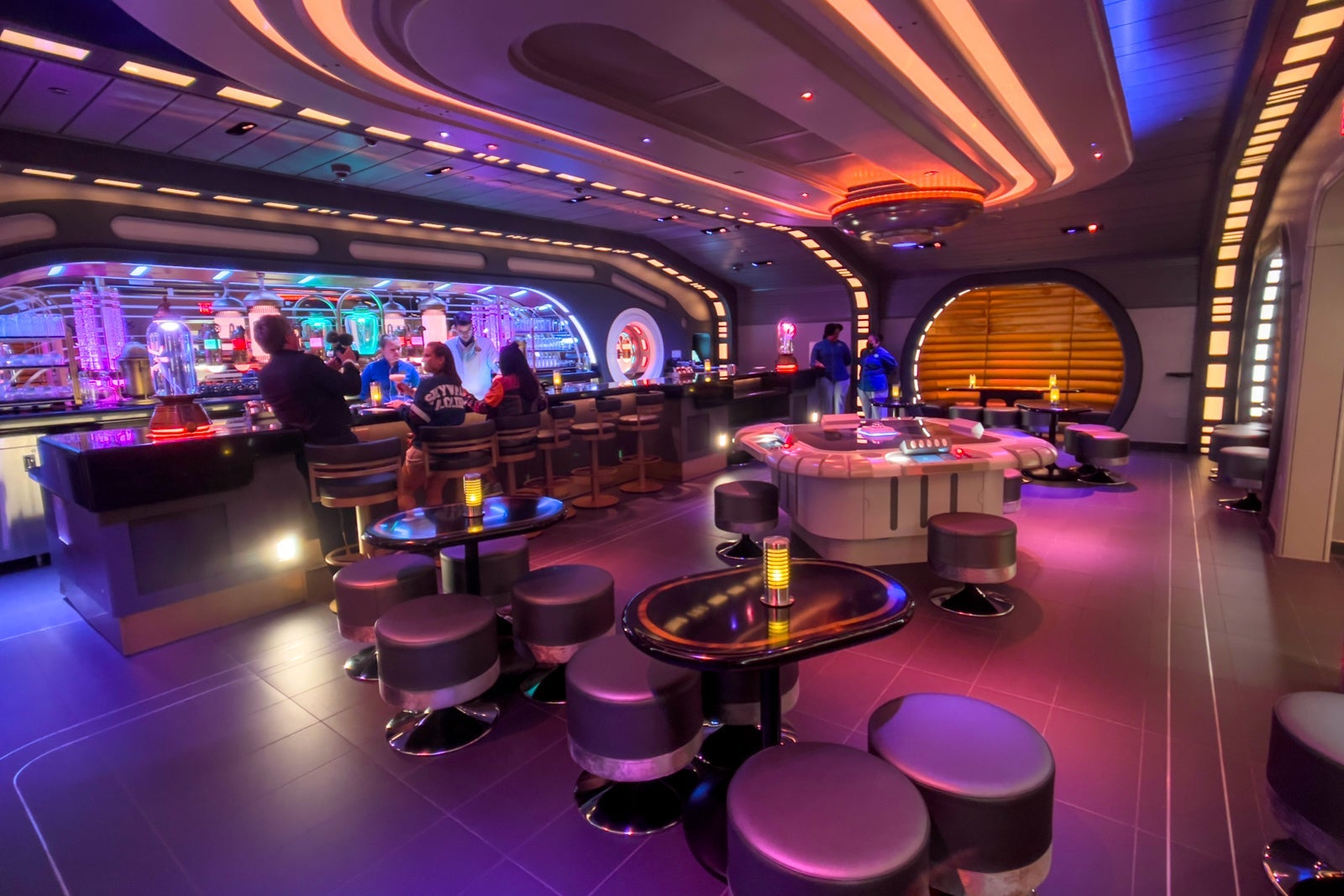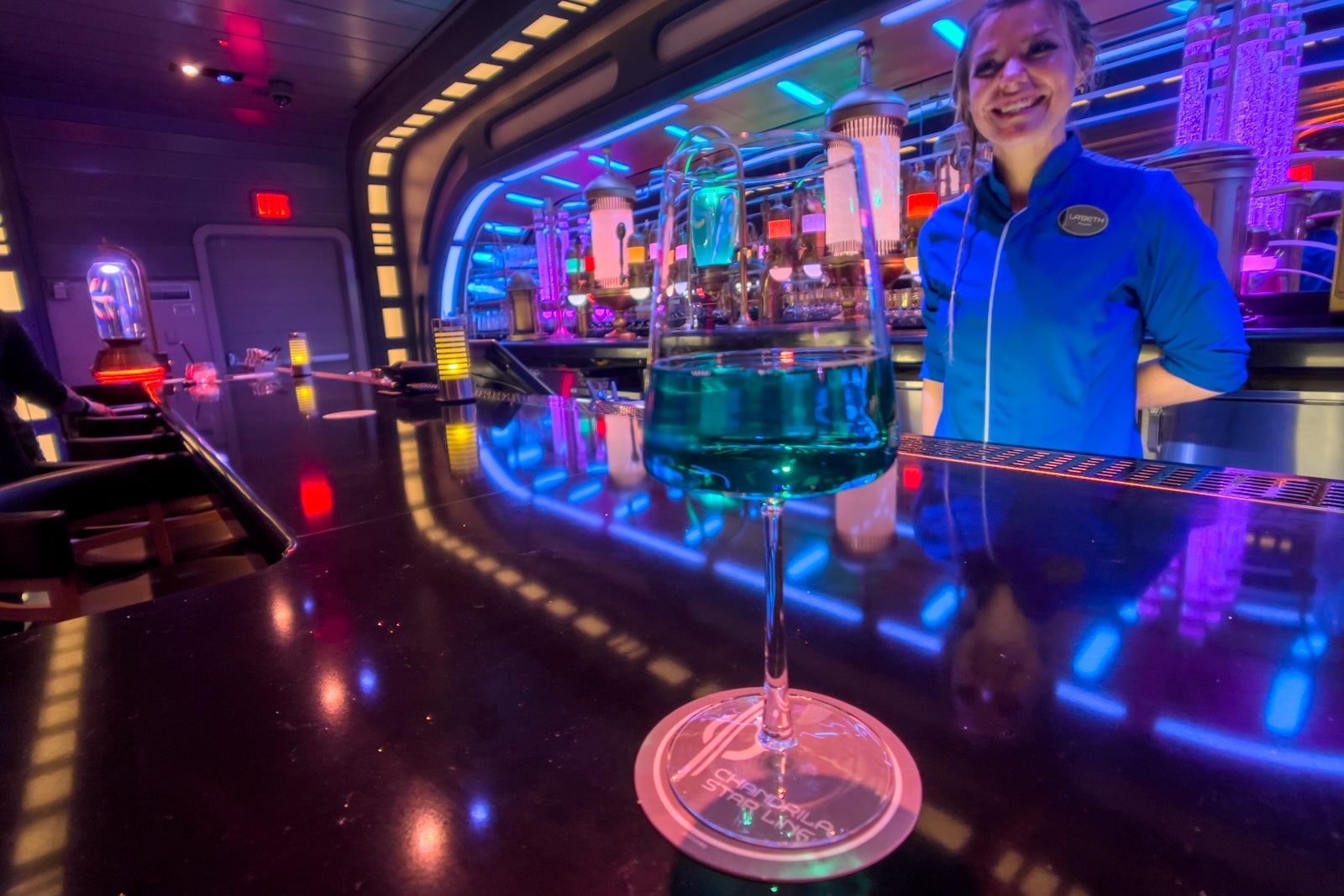 And just like you have to rest, even in space, you also have to eat (and maybe even enjoy cocktails and snacks in the Sublight Lounge). I kicked up my weary space boots and enjoyed a few beverages and snacks, including a Mandalorian Sling (the galactic equivalent of a classic Manhattan) with a cheese platter that came out in a dramatic, smoke-filled cloche.