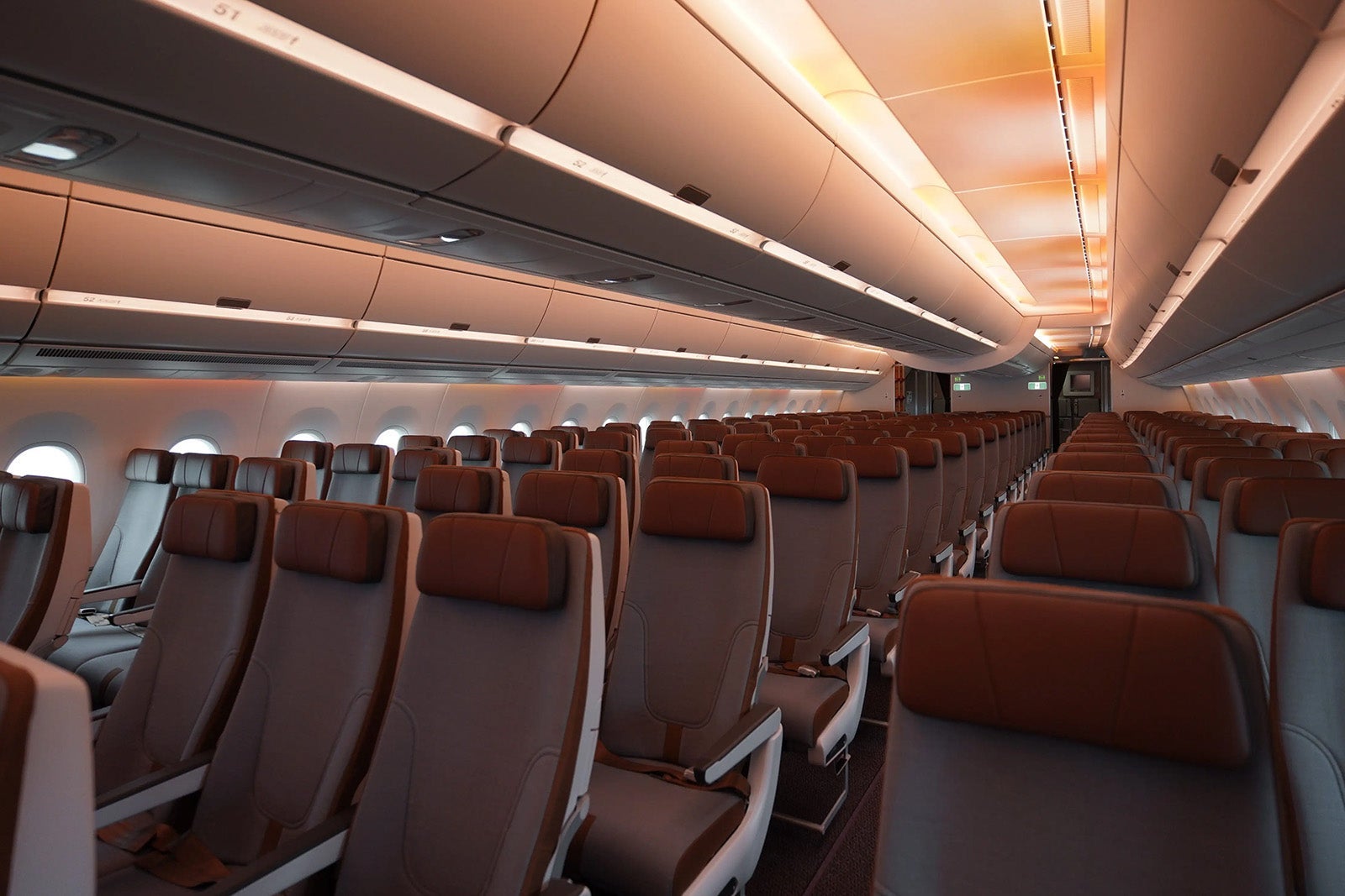 Inmarsat GX Aviation-powered satellite Wi-Fi is available on the carrier's A350. First- and business-class customers can enjoy unlimited free internet, while those in the back can access a free messaging plan.