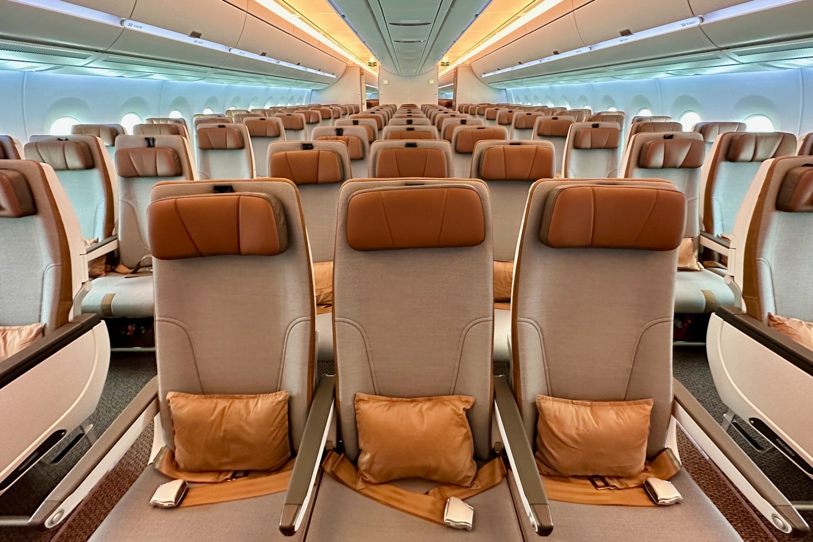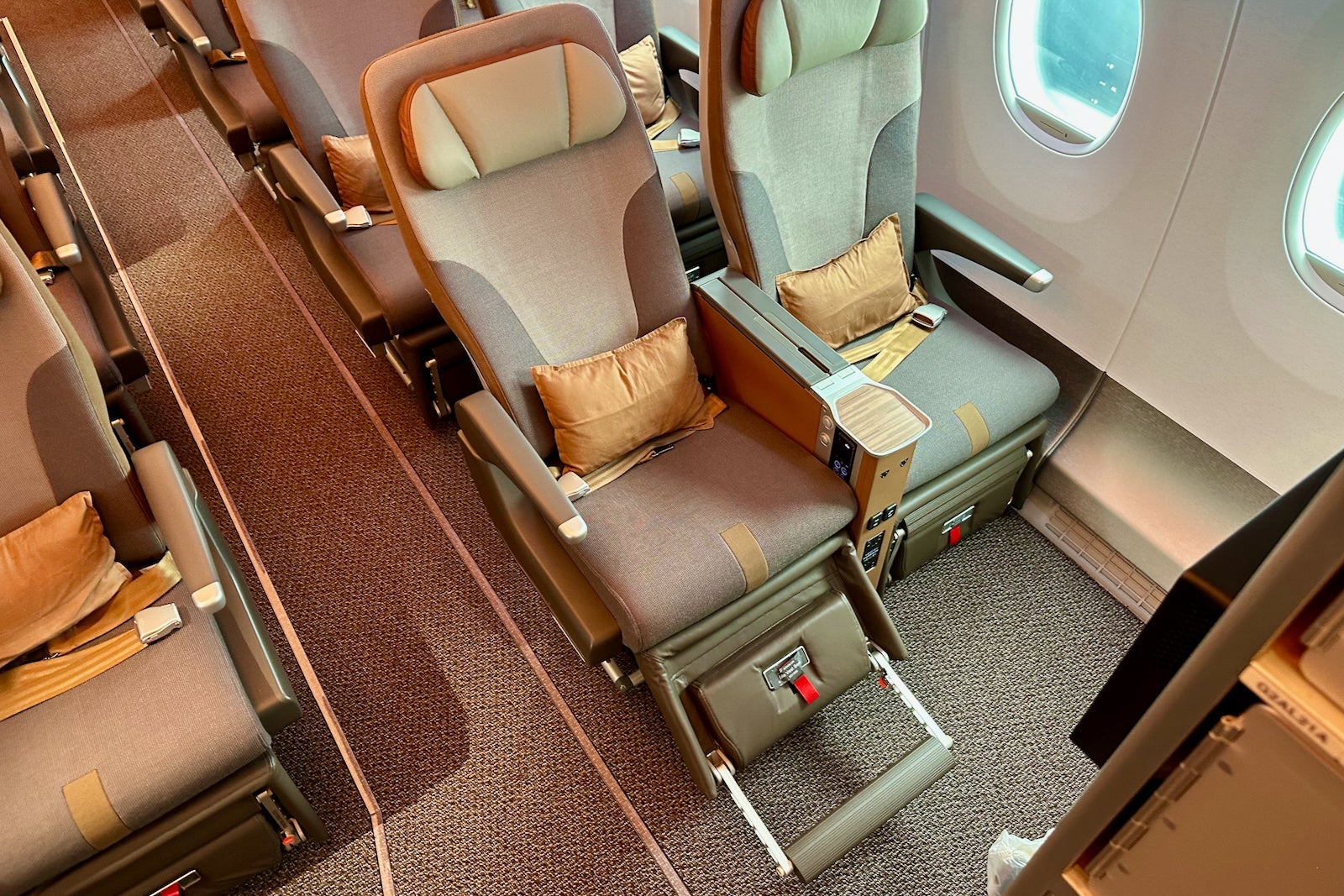 That said, the seats appeared quite comfortable, offering 40 inches of pitch and generous recline. (That's 2 more inches of pitch than Delta offers in Premium Select on its Airbus A350 — a very noticeable difference.)