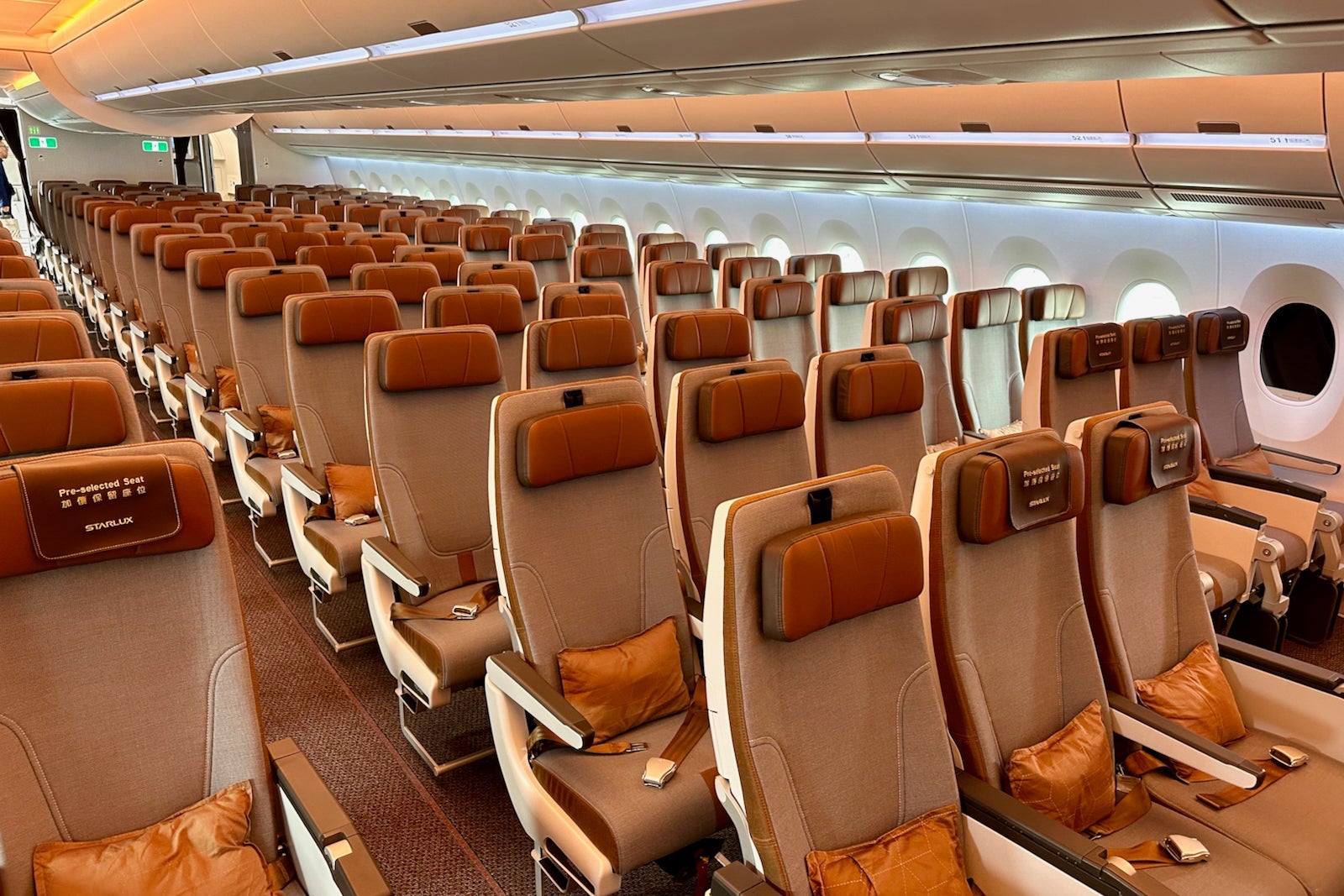 The 240 economy-class seats on Starlux's Airbus A350 are arranged in a two-cabin configuration.
