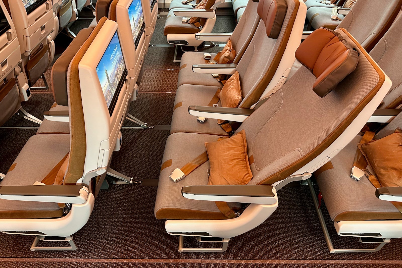 The economy cabin is designed with similar beige, gold and gray motifs as the premium economy cabin, so it should also feel quite relaxing and welcoming once you step inside.