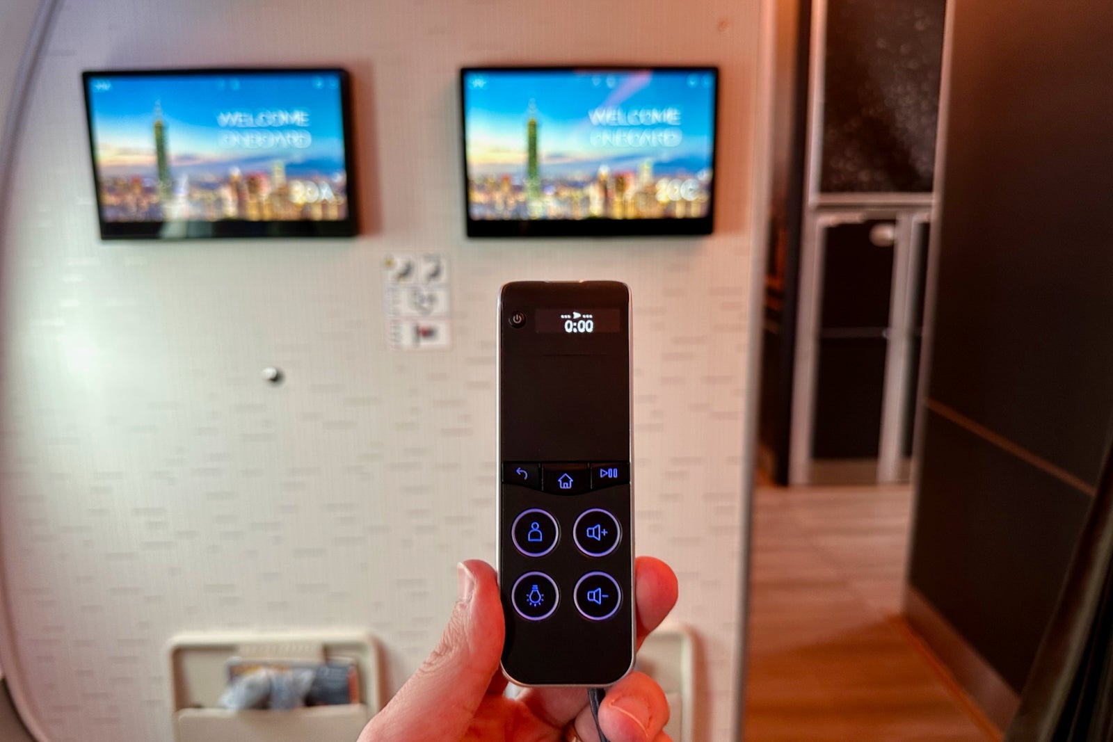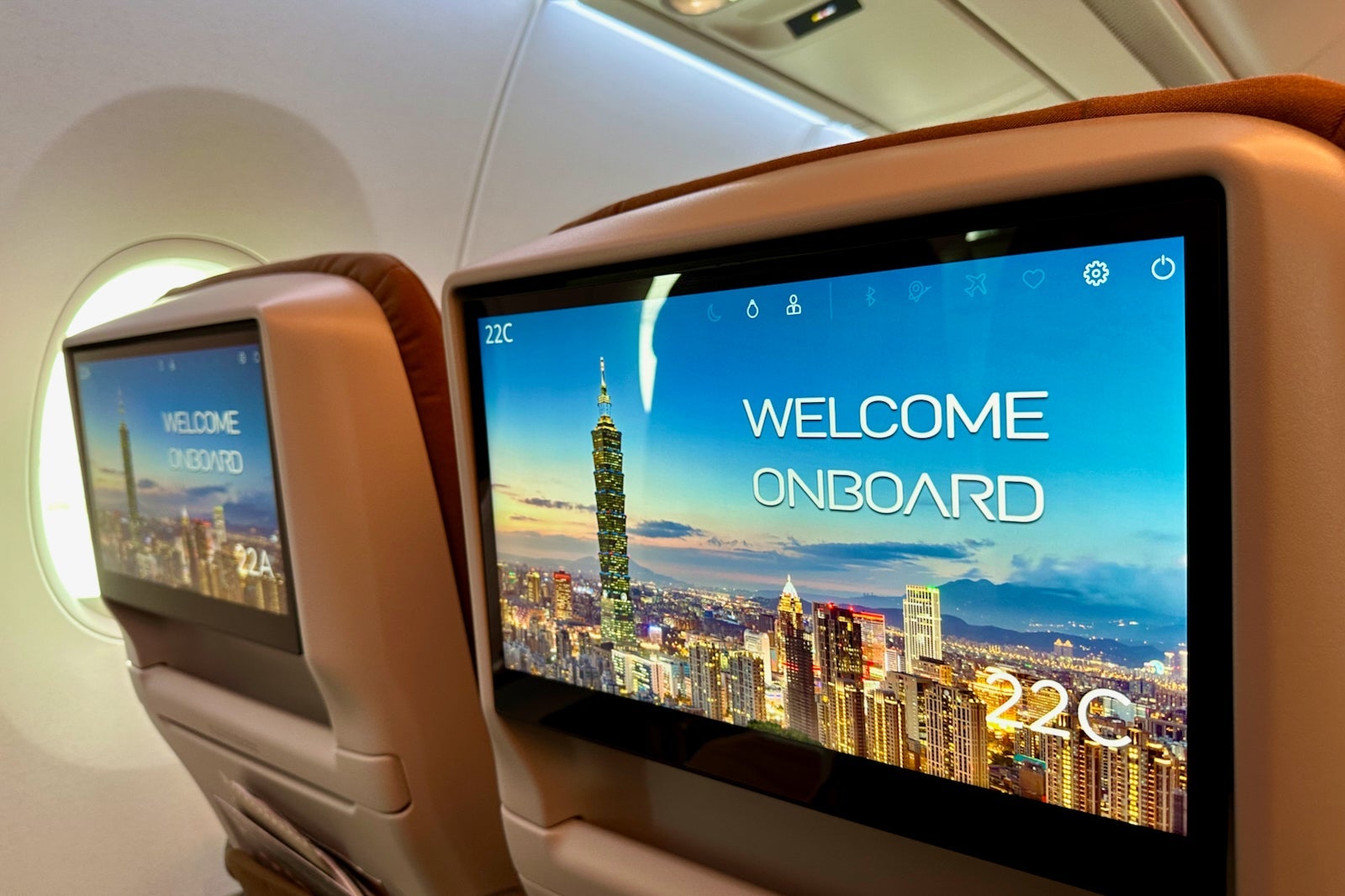 I was impressed with the 15.6-inch seatback entertainment screens that Starlux installed. Aside from the crisp 4K picture quality, they also feature Bluetooth connectivity, so you can connect your AirPods or other wireless headphones without a dongle.