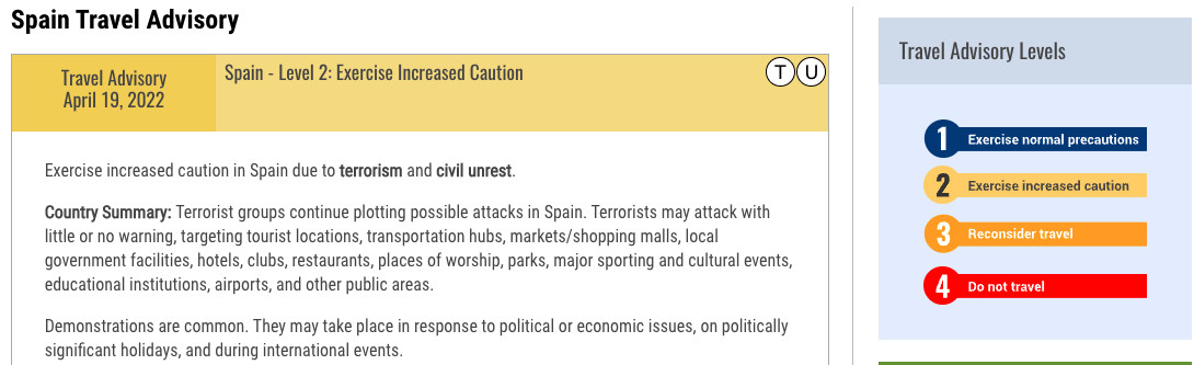 For example, the State Department currently lists the majority of countries at a Level 2, including many that had previously been called a Level 3 or Level 4. Although a lower designation is generally a good sign for travelers, Level 2 warnings still ask travelers to "exercise increased caution" reflective of overall safety concerns.