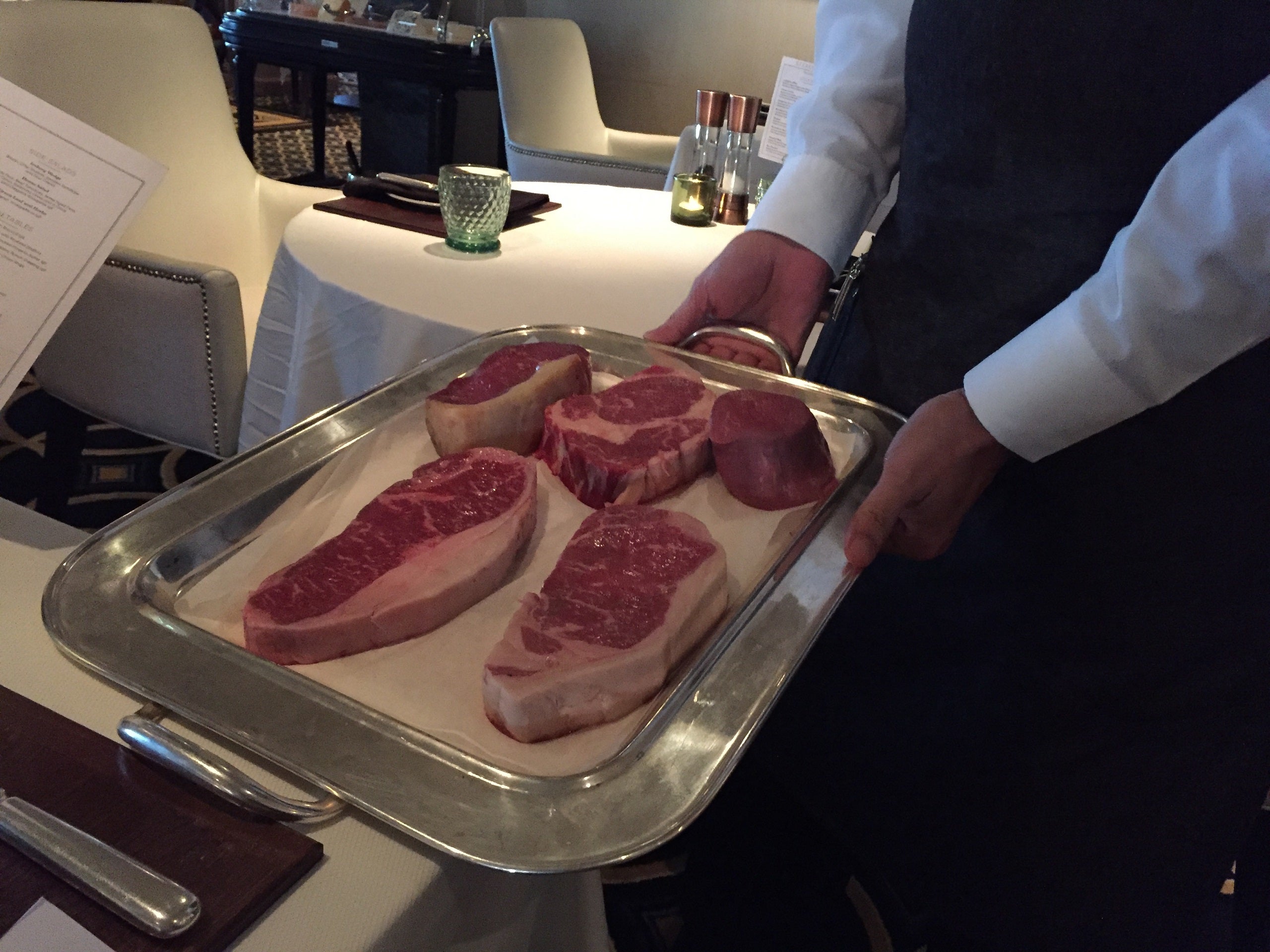 A selection of steak cuts is presented to diners before they order at Steakhouse at The Verandah on Cunard's Queen Mary 2. (Photo by Ashley Kosciolek/The Points Guy)