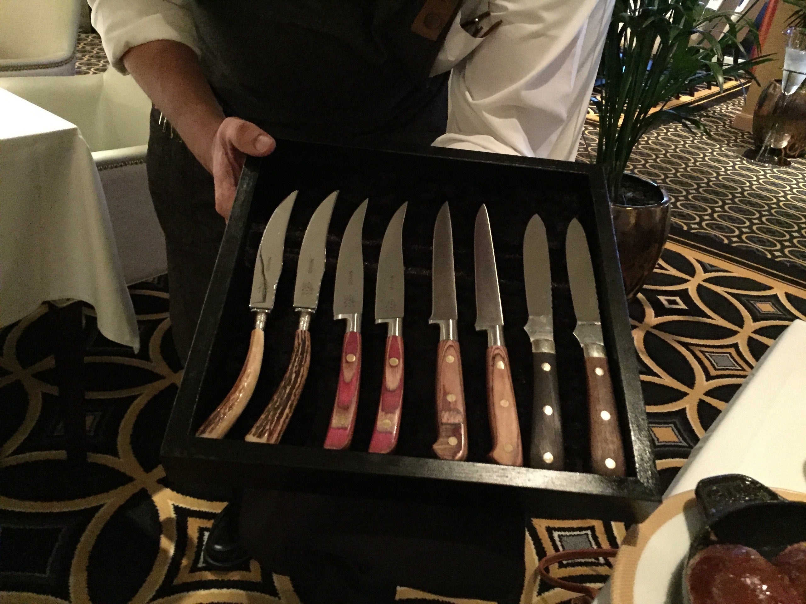 After we ordered but before the food arrived, our waiter returned with a selection of knives. The handles varied in construction and shape in an effort to cater to diners' different hand sizes. The attention to detail was astounding.